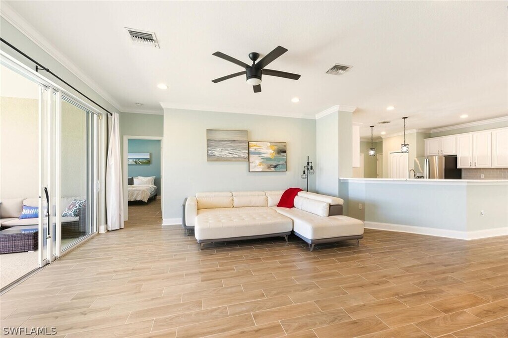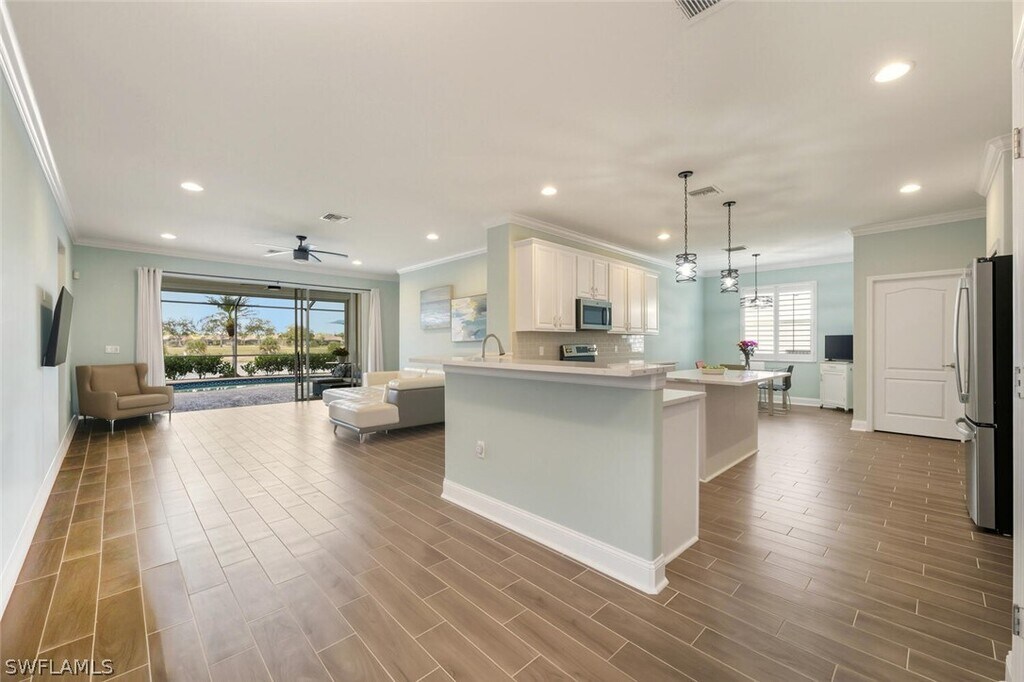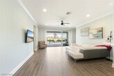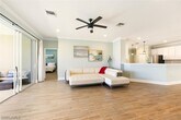 Well-maintained and updated 4-bedroom,3-bath home with 3 car garage and extra storage. The gourmet kitchen has updated appliances,including a double oven with an air fryer. Updated tile floors throughout. Pool with spa and updated pool tile. Pool cleaning,internet and landscape services are provided with rent. Updated lighting fixtures,including recessed lighting. Separate laundry room. The master and front bedroom suites have built-in closets. AC replaced in 2023. Kitchen appliances 2023. Plantation shutters on all windows. ADT set up and ready for the tenant to activate. 2024 high-impact windows on front and back of house,but entire house has storm protection. Impact screen protection is automatic for lanai. Ceiling storage in the garage. Private lake view. Available June 1,2026.