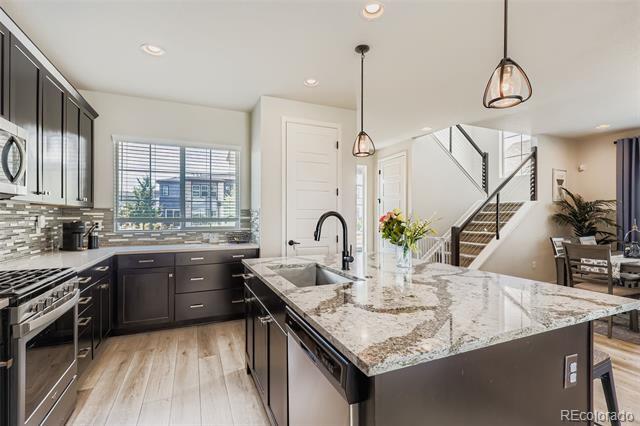 Stunning 4BR/3.5BA home 2-car attached garage w/ finished basement in Sterling Ranch. Features quartz counters, large island, soft-close cabinets, stylish LVP flooring, gas fireplace, surround sound in family room ceilings, ADT security system, A/C, laundry room w/ washer & dryer, fenced backyard w/ turf & covered patio, and 2-car garage. The Sterling Ranch community offers pool, fitness center, parks, trails, and mountain views. Includes annual state park pass to Roxborough, Waterton Canyon & Chatfield. Community center has a brewery, coffee shop, urgent care, dental, and daily food trucks. Pets are considered case-by-case. Security deposit is only $2000! Available Dec 1st, 2025. The listing agent will share the owner's contact information for showings, the application process, and any other questions you may have regarding the lease agreement. The listing agent is related to the owner/landlord. Single Family Residence MLS# 8765740