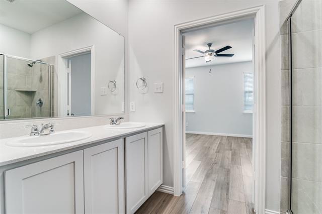 Welcome to your dream home in the highly desirable master-planned community of Woodcreek in Fate, TX! This charming floorplan offers the perfect blend of functionality, comfort, and style in a single-story layout. With 4 bedrooms, 2 full bathrooms, and 1,895 square feet of thoughtfully designed living space, this home provides everything you need for modern, easy living. The open-concept floorplan creates a bright and inviting space, anchored by a contemporary kitchen featuring sleek cabinetry, ample counter space, and a spacious breakfast nook. The kitchen flows seamlessly into the family room, creating the ideal layout for entertaining or relaxing with family and friends. Step out onto the covered back patio to enjoy your morning coffee or unwind in the evenings with peaceful views of your backyard. Three secondary bedrooms are located at the front of the house, sharing a full bathroom—perfect for guests, children, or a home office setup. The private owner’s suite is tucked away in the rear corner of the home, offering a quiet retreat complete with an ensuite bath and a large walk-in closet. Carpet free home. luxury plank floor is install all over the house. Enjoy the unbeatable lifestyle that Woodcreek has to offer, with resort-style amenities including pools, fitness centers, walking trails, parks, playgrounds, and community events. Located just minutes from I-30, Fate offers easy access to shopping, dining, and entertainment in nearby Rockwall and Royse City, while still maintaining a peaceful, small-town charm. Whether you're a first-time buyer, downsizing, or simply looking for a low-maintenance home in a vibrant neighborhood, this property checks all the boxes. Don’t miss your opportunity to make this beautifully designed home yours—schedule your private showing today! Accept 4 bedroom housing programs