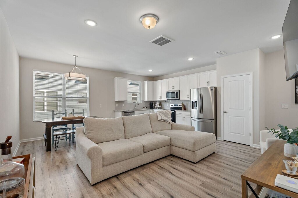 RENT SPECIAL: SECOND MONTH FREE ON A 13 MONTH LEASE TERM! Three bedroom townhome, each with its own en-suite and walk-in closet! Designer touches, a pristine kitchen complete with refrigerator, generous walk-in attic storage on the upper level, and attached 2 car garage. Enjoy the expansive green space and the convenience of being less than 20 minutes to BNA, with easy access to I-24. Does not include Washer and Dryer. This unit is unfurnished but currently staged for showing.