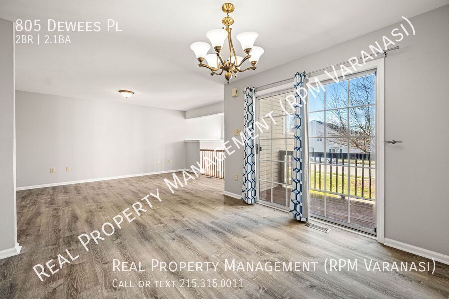 805 Dewees Pl, Trappe, PA 19426 Rent: $2,400/month | Available: Immediately Security Deposit: $2,400 Real Property Management Varanasi is proud to offer deposit-free living to qualified renters through Obligo! We understand that moving costs can add up, so we want to extend financial flexibility to our residents. When you move in with us, you can skip paying a security deposit and use the savings where it can generate the most value for you. Make your pivotal move to 805 Dewees Place! This beautifully refreshed 2 Bed, 2.5 Bath townhome offers 1,482 Sq Ft of perfectly designed, tiered living space within the highly desirable Heritage Park Community and the award-winning Perkiomen Valley School District. Home Highlights & Features—Newly Updated! - Pivotal Living Space: Vinyl floors greet you upon entry, flowing into a bright, tiered layout perfect for modern life and entertaining. - Fresh Interior: The entire home has been freshly painted and features brand new Luxury Vinyl Plank (LVP) flooring throughout the second floor and basement (NO CARPETS!). - Updated Kitchen: The open-concept kitchen features large ceramic tiles, ample counter space, and a pantry. - Updated Fixtures: All kitchen and bathroom light fixtures have been newly updated for a fresh, modern feel. - Laundry: In-house Washer/Dryer unit - New Mechanicals: Enjoy peace of mind with a brand new hot water tank installed in February 2025! - Main Level: Enjoy a formal dining area expanded by a private deck/balcony, plus an ideally located half bathroom for guests. The spacious, light-filled living room offers ample space for relaxing. - Lower Tier Comfort: A massive family room/recreational space on the lower level captures great natural light and includes ample adjacent unfinished storage. - Primary Suite Retreat: The spacious primary bedroom suite features cathedral ceilings, a large walk-in closet, and an attached bathroom with a convenient walk-in shower. - Secondary Bedroom: The second 12x10 bedroom now features the new LVP flooring and excellent natural light. Prime Location & Convenience: - Top-Rated Schools: Located within the highly acclaimed Perkiomen Valley School District. - Shopping & Dining: Just minutes away from major shopping centers, supermarkets, and a wide variety of restaurants, ensuring every necessity is close at hand. - Commuter Friendly: Perfectly situated near major roadways and highways, including Route 422 and Route 113, providing quick access for daily commutes and weekend travel. - Heritage Park Amenities: Enjoy access to the community tennis courts, playground, and clubhouse/gym! - Outdoor Lifestyle: Located near the scenic Perkiomenville Trail and a short walk to "Water Works Park." Worry-Free Maintenance: - Enjoy a truly low-maintenance lifestyle. - Utilities: Tenant is responsible for all utilities. - The HOA, paid by the owner, covers trash, grass & snow removal, and common area maintenance. If you’re seeking low-maintenance, high-quality living in a vibrant community, this rental checks every box. This home won't last long! Schedule your private showing today and discover your new dream rental. Contact Us Today: For self-showings, visit: bit.ly/RPMrentals OR call RPM Rental Hotline: For private in-person showings, please call us at Don't miss out on this exceptional opportunity! This is a Real Property Management Varanasi listing, serving the Greater Philadelphia Area. Please remove shoes while seeing the property (or use the booties provided, if any!) Availability and Information Disclaimer: Rental availability, pricing, and other property information are subject to change. While we strive for accuracy, please contact us to confirm details before applying. All Other Utilities Are Paid By The Tenant Children Play Area Club House Gym Tennis Courts Walking Trails