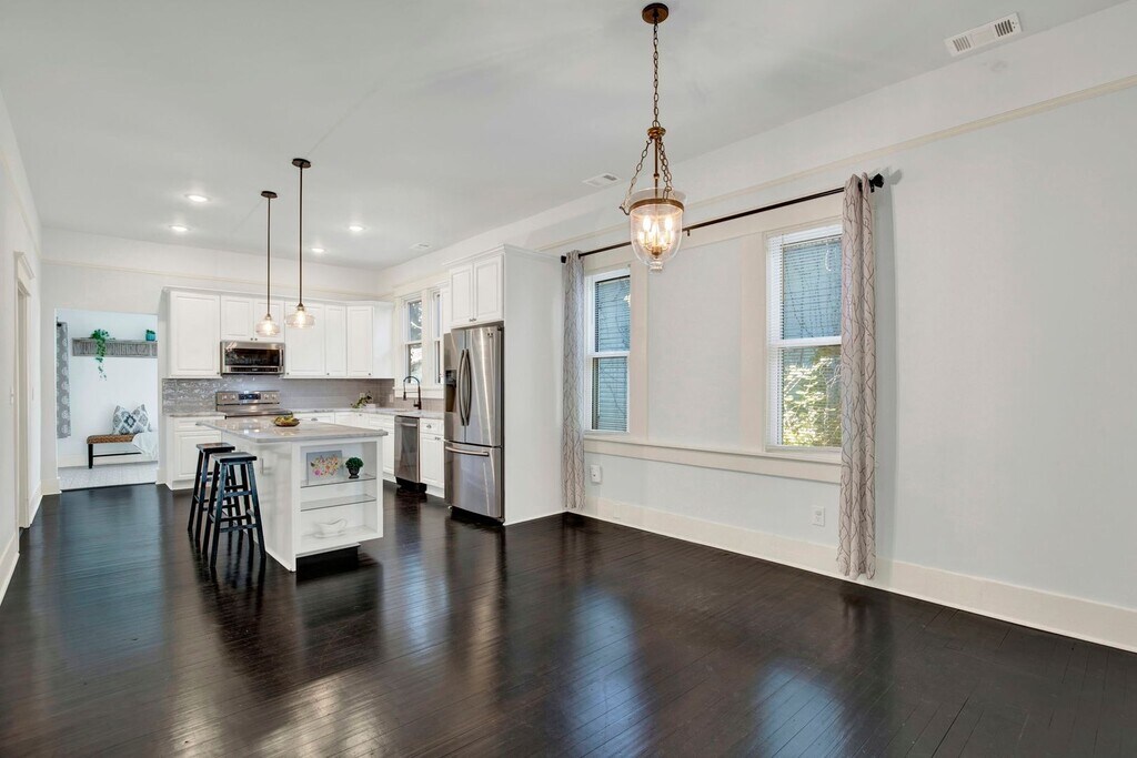 This beautifully renovated 3 bedroom/ 2 1/2 bathroom offers the perfect blend of historic charm and modern convenience. Relax in a generous master bedroom featuring its own private, modern ensuite bath and huge walk-in closet drenched in sunlight. Modern appliances and ample counter space make this the ideal home for entertaining before heading out to the neighborhood's eateries. Extra storage in the basement. This gem is perfect for those who wat to experience the best of Savannah's urban lifestyle without sacrificing comfort.