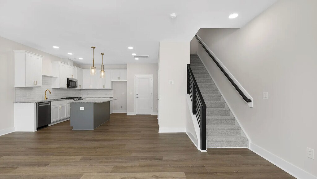 Step into modern comfort and timeless style with a beautifully designed 4-bedroom, 3.5-bath, three-story townhome offering 2,520 square feet of flexible living space. The main level welcomes you with an open-concept design that brings the kitchen, dining, and living areas together seamlessly. The chef-inspired kitchen sets the stage for both everyday meals and memorable gatherings, while the convenient powder room adds effortless functionality. Upstairs, the primary suite is a true retreat, featuring a tray ceiling, two walk-in closets, and a spa-like bathroom with a walk-in shower and elegant Silestone double vanities. A private balcony extends the space outdoors perfect for enjoying your morning coffee or unwinding with a glass of wine in the evening. Two additional bedrooms, a full bath, and a perfectly placed laundry room complete this level. The third floor expands your options even further with a spacious recreation room that can serve as a fourth bedroom, complete with its own walk-in closet and full bathroom. An unfinished walk-in attic provides even more storage for seasonal decor or keepsakes. Additional highlights include 9-foot ceilings on the first and second floors, an 8-foot ceiling on the third floor, and a two-car garage. Nestled in a vibrant new Fuquay-Varina community just 5 miles from Holly Springs. Discover the perfect blend of comfort, convenience, and thoughtful design. Pet addendum if pet. Lease application will be verified via the Clara vetting service.