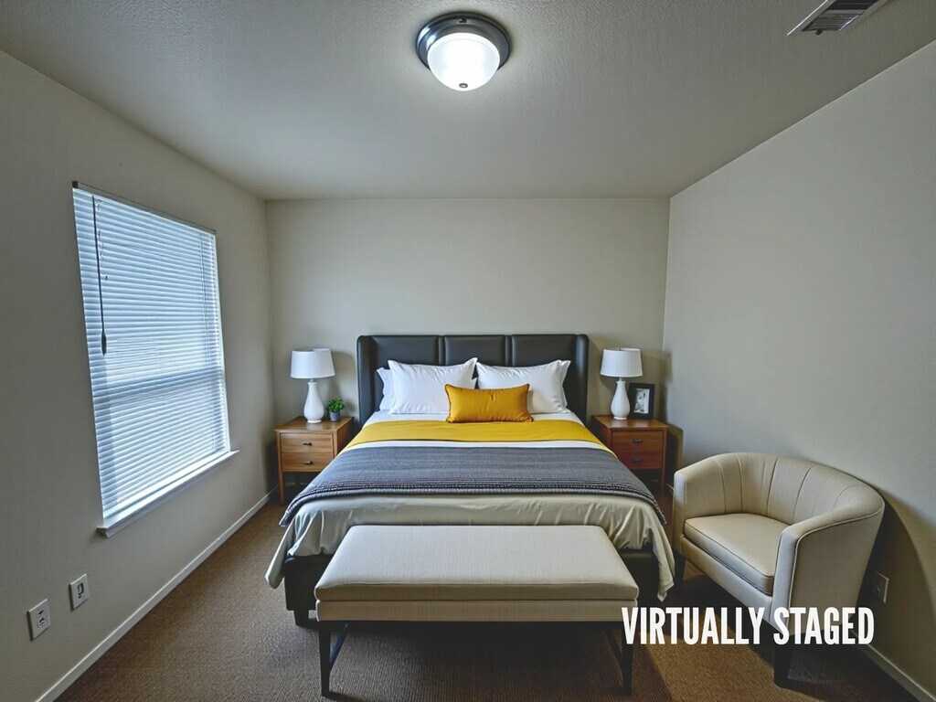 View Virtual Tour: This two story townhouse offers 2 bedrooms, 1.5 bathrooms, and 899 square feet of space. The kitchen comes with plenty of cabinet space, refrigerator, dishwasher, stove, double sink, and kitchen dining area. The 1/2 bathroom and laundry hook ups are downstairs while both bedrooms and the full bathroom are upstairs. There is carpet in the living room and bedrooms, linoleum in the kitchen and downstairs bath, and tile in the entryway and upstairs bathroom. HUD/Section 8 accepted. Disclaimer: The furnishings or enhancements shown are AI-generated and intended for inspiration only. They may not reflect the actual scale, condition, or current features of the property.
