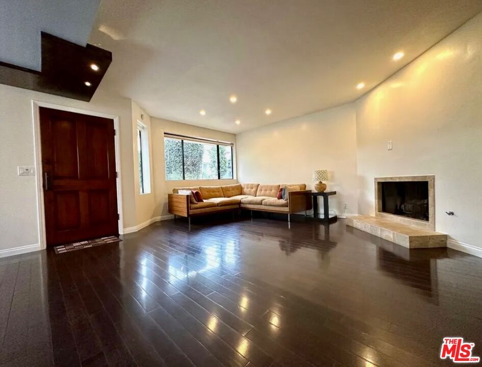 Welcome home to this sophisticated two-story residence in a contemporary three-unit building, blending modern design with comfort and convenience. The main level features rich mahogany bamboo floors, a cozy fireplace, and an airy open layout that seamlessly connects the living, dining, and kitchen areas. Perfect for entertaining or unwinding at home. The updated kitchen showcases sleek concrete countertops, stainless steel appliances, oak cabinetry, and a chic tile backsplash. A stylish powder room with a vessel sink and designer tile completes this level. Upstairs, the primary suite is a serene spacious retreat, a modern vanity, a high-pressure shower, and a custom walk-in closet. The second bedroom offers warm mahogany floors, mirrored closet doors, and its own full bath. A brand new stackable washer/dryer adds everyday convenience. Step outside to your private terrace, overlooking beautifully refreshed landscaping; an inviting spot for morning coffee or evening relaxation. Designed with energy efficiency in mind, the home includes separate thermostats for each floor and large picture windows that flood the space with natural light. Located in one of West Hollywood's most vibrant neighborhoods, you're moments from Trader Joe's, John Reed Fitness, The Belmont, Koi, EP & LP, and premier shopping at Beverly Center and Melrose Avenue, with Cedars-Sinai Medical Center just minutes away. This rare offering includes three side-by-side parking spaces in a secure gated garage, plus additional storage. The freshly updated building features modern fixtures, lush landscaping, and a spacious shared yard with contemporary seating and string lights perfect for entertaining under the stars. Housing provider prefers an 18-month lease term. MLS# 25615125