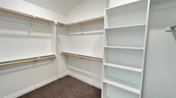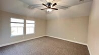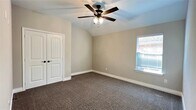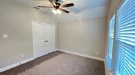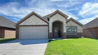 This stunning Scott Ellis Homes build offers a perfect blend of style and comfort! Featuring 3 bedrooms, 2 full baths, and a 2-car garage, this home boasts wood vinyl flooring in the kitchen and plush, stylish carpeting throughout the rest of the home. Designed with spacious 10-foot ceilings, the open-concept living area is enhanced by a large kitchen island, marble countertops, white cabinetry, under-cabinet lighting, and crown molding. The primary suite offers a dual-sink vanity, separate shower and tub, and a frameless glass shower for a luxurious feel. Each room is equipped with ceiling fans and blinds for added comfort. Step outside to enjoy the covered back patio, stained fence, and beautifully landscaped yard, complete with sprinkler system and gutters. Conveniently located just 5 minutes from L3-Harris, I-30, local restaurants, and shopping, this home is a must-see!