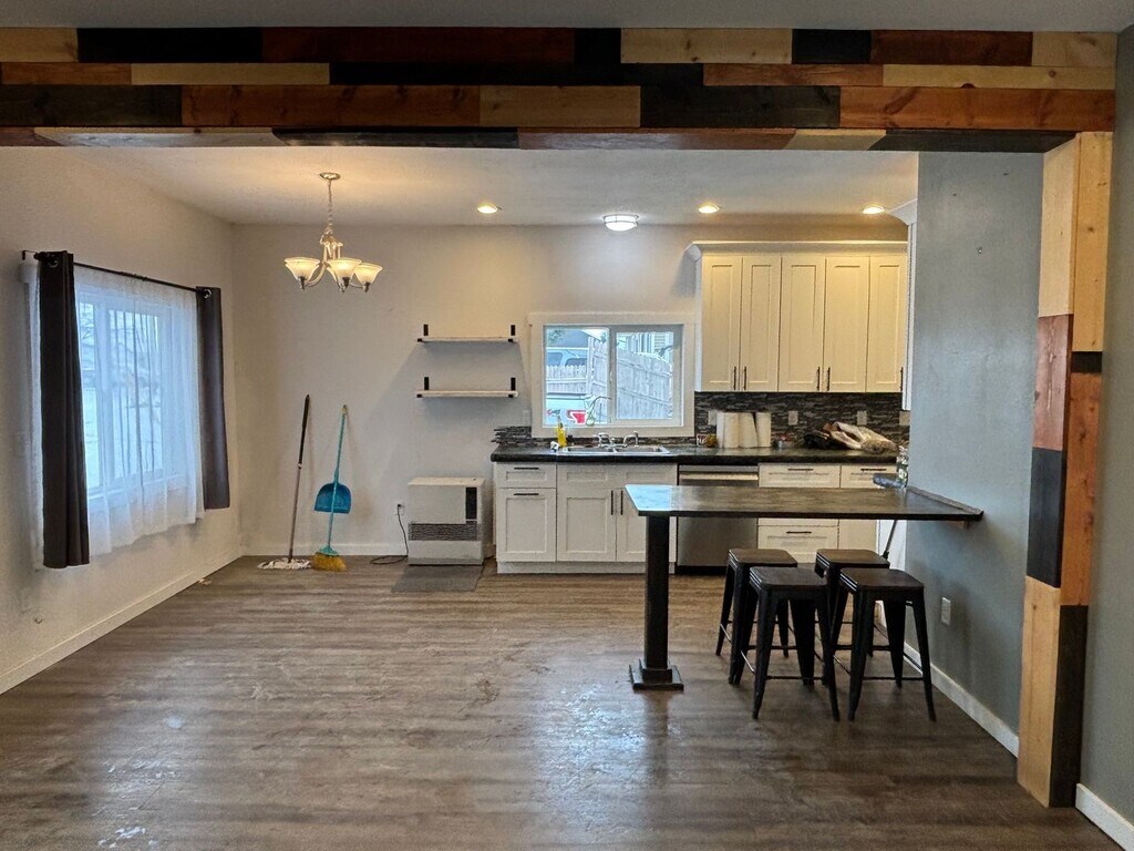 3 bedroom 2 bath Grangeville house with a sun room and a fenced backyard with raised garden beds. Pet-friendly (2 maximum). Utility shed, lawn mower, and washer/dryer included.