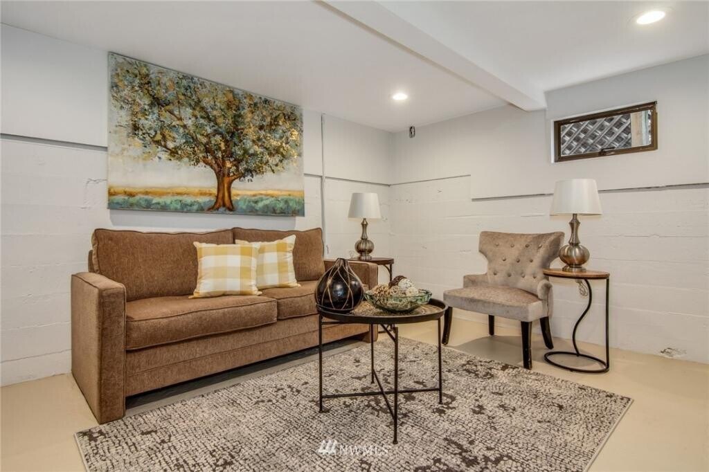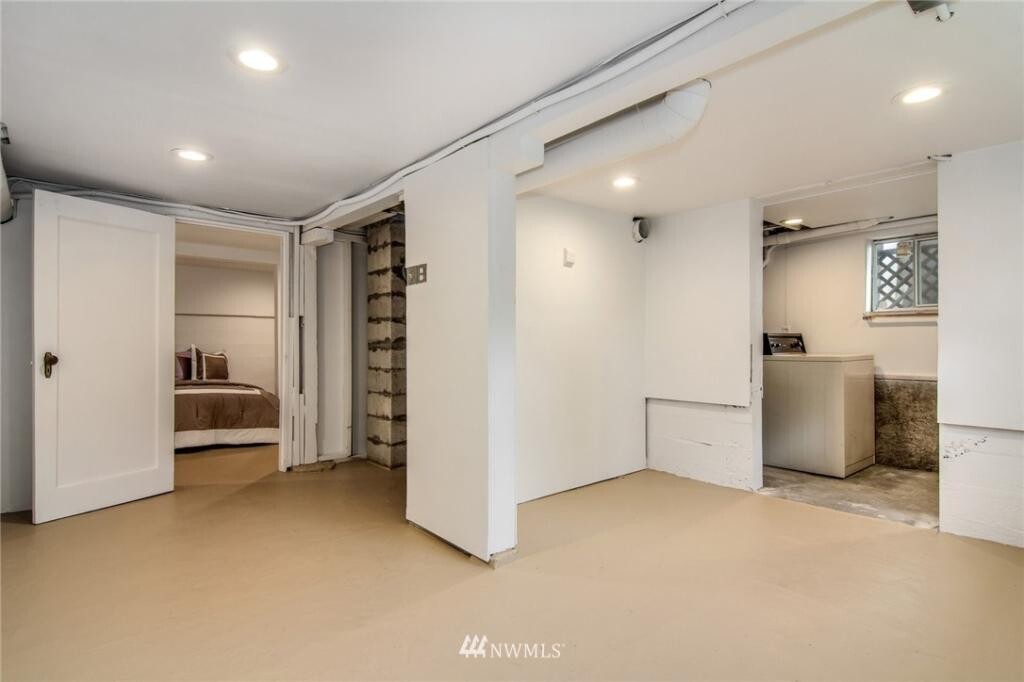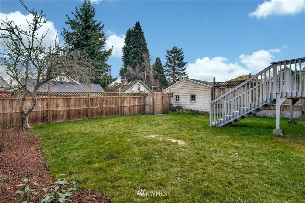 1 bed, one bath with basement and a bonus room/office. Deck. large back yard Quiet, light filled retreat in the heart of desirable Loyal Heights. Open main living area with large windows flows to kitchen with new countertops and appliances. Spacious full bath with double sinks. Partially finished basement provides extra living area. Fully fenced backyard with deck and fire pit.