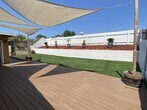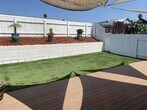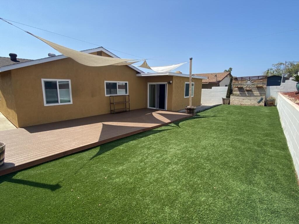 Single story home in great location. Walking distance to shopping, dining, bus routes more. Gorgeous home inside out! Central A/C, newer kitchen cabinets w/quartz countertop, stainless steel appliances (including fridge!). Nice tile floor in living areas with modern laminate flooring in bedrooms. Upgraded bathrooms. Mirrored closet doors in bedrooms, dual pane windows throughout. Low maintenance front back yard with turf trex deck. Pets OK! Washer Dryer located in attached 2 car garage. Home will be fully repainted ready for move in around 11/15.