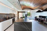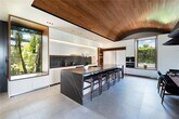 Modern waterfront home combining international craftsmanship, advanced technology, and serene design. Built with impact-resistant glass and Fleetwood sliding doors, the residence features app-controlled Lutron lighting, hidden blackout shades in all bedrooms, and Italian kitchen cabinetry with concealed Sub-Zero and Miele appliances. Built-in Italian closets, Italian interior doors, and Brazilian wood walls with vaulted ceilings and a hidden bar elevate the interior. Outdoor spaces include a finished rooftop patio with Renu cold plunge, app-controlled heated pool and adjacent spa, and a private dock with boat lift for up to a 38-foot vessel. Wellness upgrades include a whole-home alkaline water system and germicidal UV A/C purification. The grounds feature designer landscaping with a dramatic living wall entryway and a sculpture garden showcasing an original Mattis Bitzer installation acquired at Art Basel and exhibited at the Louvre. This property offers understated luxury with exceptional attention to detail inside and out