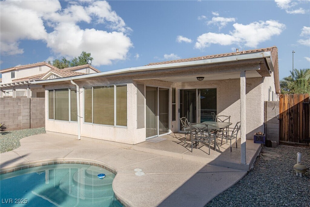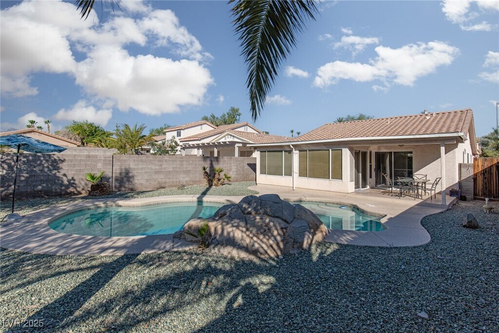 Welcome to this stunning single-story home located in Northwest Las Vegas. This property boasts three spacious bedrooms and two full bathrooms, offering ample space for your comfort and convenience. The kitchen is a chef's dream, equipped with modern stainless steel appliances and sleek granite countertops. The home also features a large sunroom, perfect for soaking in the natural light and enjoying the view of your private pool. Step outside to your covered patio, an ideal spot for outdoor dining or simply relaxing in the shade. With a beautiful pool at your disposal, you can enjoy a refreshing dip whenever you please. This home truly offers a blend of comfort, style, and luxury. Don't miss out on this gem in the heart of Las Vegas! Resident Rewards Program is available as an add on for $39/mo. Ask for details. Monthly Charges: $2,300 rent + $21 trash + $31 sewer = $2,352/mo.
