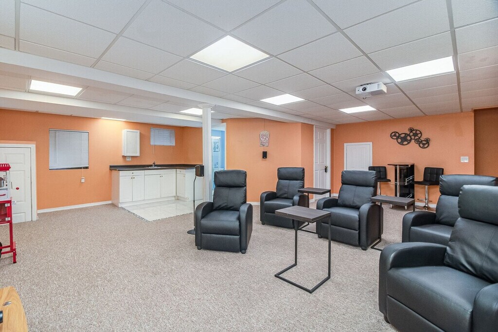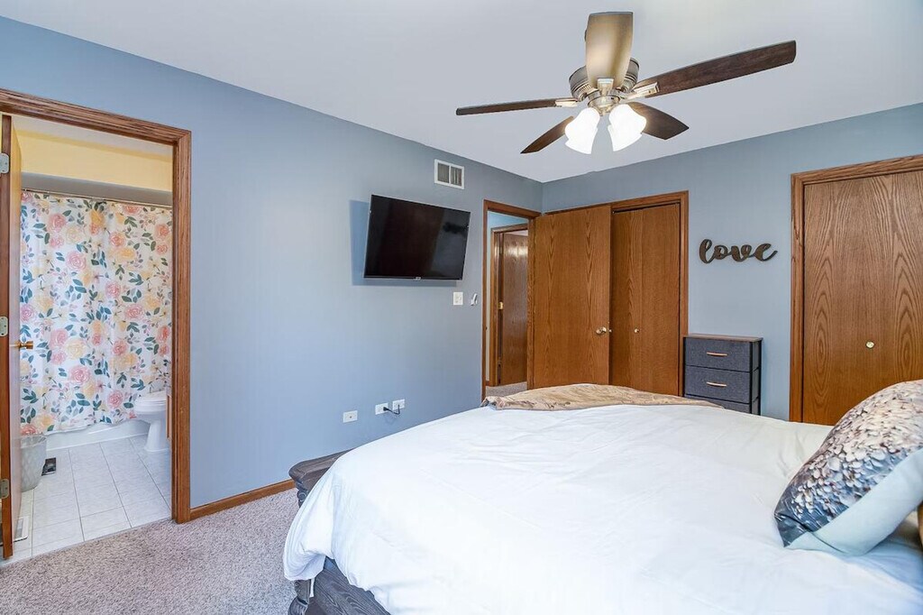 Welcome to this stunning 2200 SF home, complete with a finished basement and a two-car garage. This property boasts 4 bedrooms and 3.5 bathrooms, including a master suite with a king-size bed and three additional bedrooms with queen beds. A full bathroom is conveniently located on the 1st floor. The kitchen is fully equipped with all the utensils, pots, pans, appliances, and spices you could possibly need, making it easy to feel at home. Built in 2002, the home features an open concept design and spacious rooms. The home offers a wealth of amenities for your enjoyment. The basement is a hub of entertainment, featuring five reclining theater seats, a pool table, and an arcade unit with over 1000 classic video games. The master suite includes a luxurious connected bathroom and ample space for relaxation. For those traveling with children, the home is equipped with a pack & play sleeper, a stroller, a highchair, and a booster seat. Technology enthusiasts will appreciate the six LCD televisions with access to streaming services like Hulu, Disney, and ESPN, as well as a projector with a screen. The home also offers up to 300 MBPS internet speed with Wi-Fi throughout and a sound bar in the living room. The property includes premium amenities such as a variety of cooking spices and oils for a delightful meal experience. Enjoy the movie theater setup in the basement for a cinematic experience at home. Please note that fees may vary for long-term stays. Located in a family-friendly neighborhood, this home provides easy access to local attractions and amenities. With a two-car garage and a driveway parking pad that accommodates three additional vehicles, parking is never an issue. The area offers plenty of street parking as well. Check-in requires submission of ID and security fees, without which access to the property will not be granted. The property does not accept reservations without security fees paid upfront. No exceptions to this house rule. The calendar is updated frequently, but availability may change due to high demand. The home is equipped with up to 300 MBPS internet speed and an ethernet hard line, making it ideal for remote work. A laptop computer is not included.