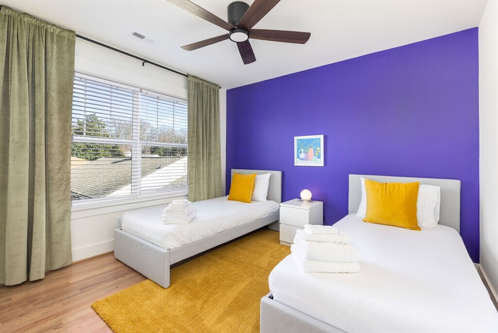 Feel at home in this recently built 4-bedroom townhome in Graham Heights. This townhouse offers 2336 sq ft of modern elegance. Designed for comfort and connection, this home features an open layout main floor living space with 9' ceilings, an electric fireplace, and two 65" Samsung Smart TVs. The fully equipped chef's kitchen features an oversized island, a gas range, and stainless steel appliances. Enjoy the private hot tub, outdoor fire pit, cornhole, disc golf putting basket, and Yardzee. Central AC, Wi-Fi, and in-unit laundry with detergent are provided. Well-behaved pets are allowed with a pet fee of $100 and a pet policy agreement. Space is available for 2 cars in the driveway, plus free street parking. Located on a quiet street in Graham Heights, this home is near Uptown, Camp North End, and NoDa. It is just minutes from Camp North End (3 min), NoDa Arts District (5 min), Uptown Charlotte (7 min), Optimist Hall (6 min), Queen’s University (12 min), and Charlotte Douglas International Airport (CLT) (16 min). Absolutely no parties are allowed. This house is in a quiet residential neighborhood, and there is a train track about 8 blocks away, so you may occasionally hear the sound of trains as they pass. Failure to register an unauthorized pet will result in a $200 fee. Dedicated workspaces are available on both levels. [SI]