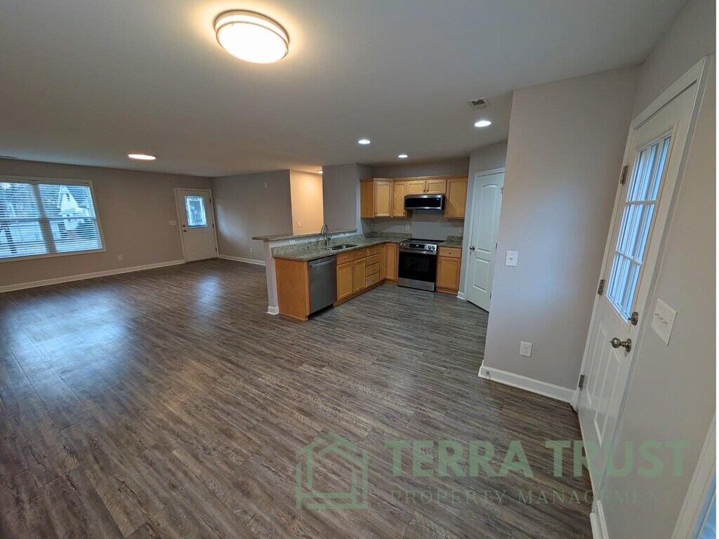 This beautiful home offers the perfect blend of modern luxury and outdoor privacy. Step inside to find a fresh, move-in-ready space featuring durable luxury vinyl plank flooring in the main living areas, brand-new carpet in the bedrooms, and fresh paint throughout.The heart of the home is the modern kitchen, fully equipped with sparkling granite countertops, stainless steel appliances, and ample cabinet space for all your culinary needs. Both bathrooms have been upgraded with matching granite vanities and stylish finishes.The true highlight of this property is the outdoor space. Situated on a large lot, the home features a beautiful, fully fenced-in backyard, perfect for relaxing, entertaining, or enjoying fresh air in total privacy.Available for move-in 1/25 or later. Flexible 12 and 13-month lease options. Home is rented unfurnished, and a new refrigerator, washer, and dryer will be in the house. In-person and virtual tours available.VIEW 3D TOUR: