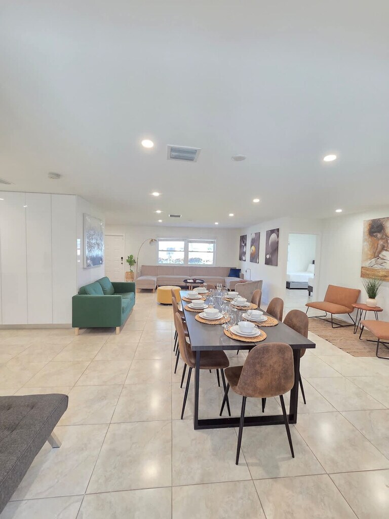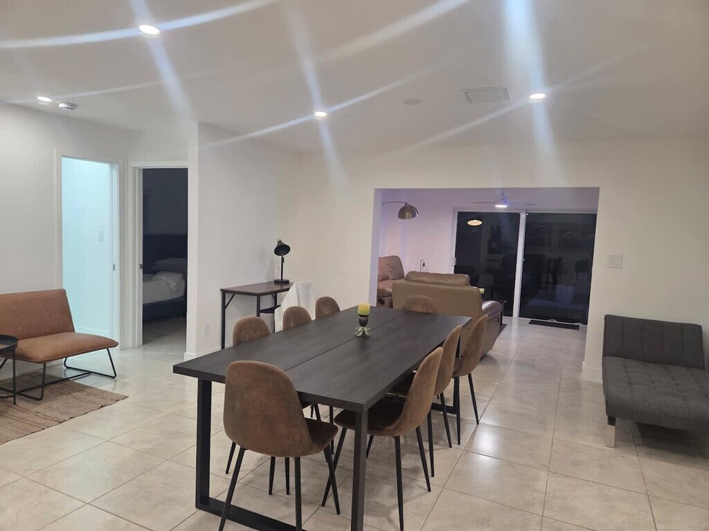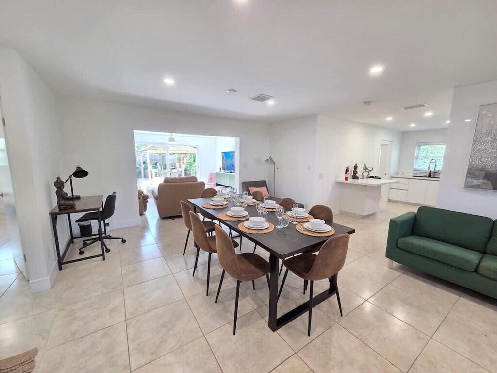 Feel at home in this modern 3-bedroom, 3-bath home in Hallandale Beach. This fully equipped home features a spacious layout with a bright living room, full kitchen, fast Wi-Fi, Smart TV, and central A/C. Enjoy the private backyard. Free parking is available. This home is just minutes from the beach, Aventura Mall, and Gulfstream Park. [SI]