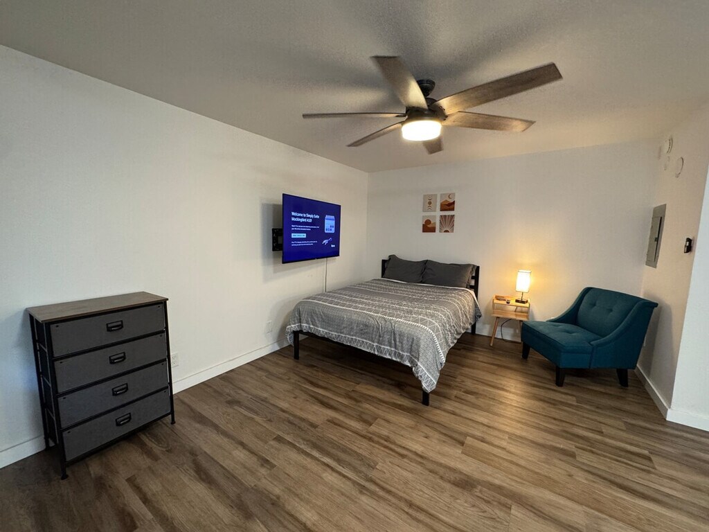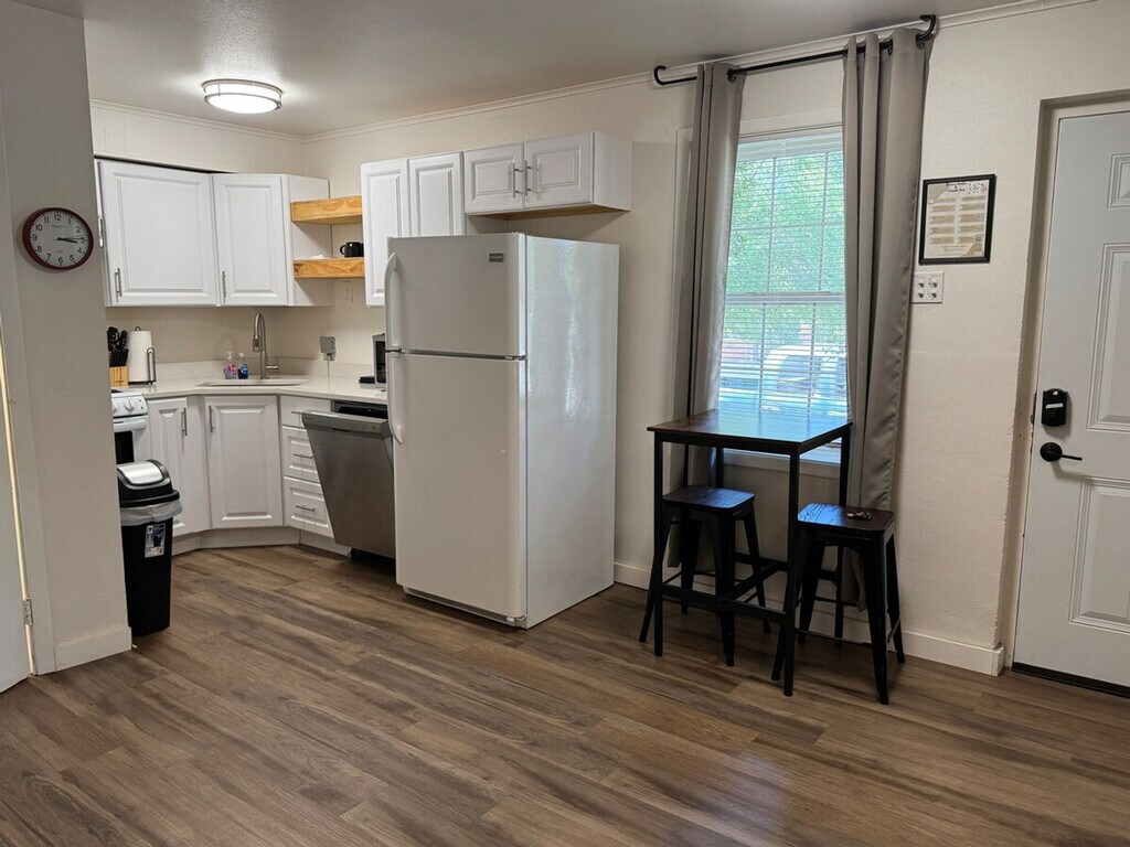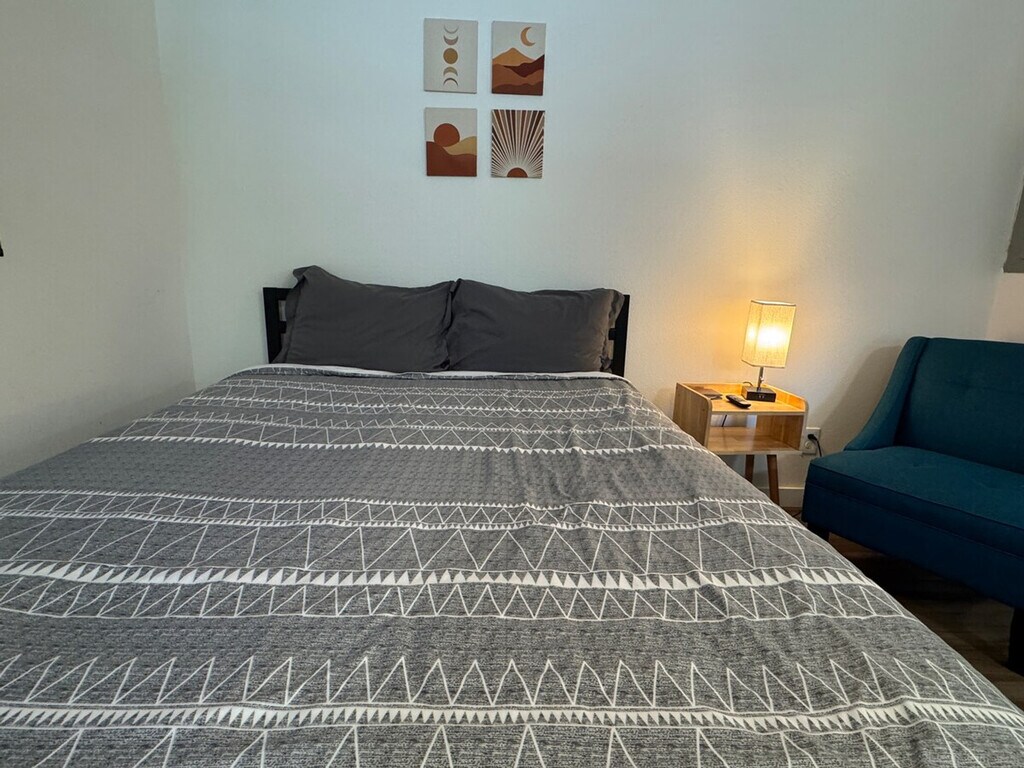 Stay in this newly remodeled unit, featuring an updated kitchen and bathroom. Just a 5-minute drive from downtown Little Rock, this location is perfect for both business and personal travel. The building is located directly across from UAMS hospital and the emergency entrance, and there are some entrance steps to walk up from the parking lot. The apartment offers a comfortable bedroom with a queen bed, USB lamps, and a table for added convenience. The bathroom features bath amenities and a full tub. The kitchen is fully equipped with a stove, dishwasher, and full-size refrigerator. Enjoy movie time on the 55" Roku TV and stay connected with free Wi-Fi. Free parking is available on the premises. Guests are welcome to bring a maximum of two well-behaved and supervised pets, with a charge of $150 per pet for additional or unauthorized animals. Pet owners are responsible for tidying up after their pets, with a $50 fee for additional cleaning. Enjoy the convenience of our on-site laundry room, available for complimentary use by all in-house guests. Located just a 4-minute walk from nearby bus stops, this apartment is ideal for exploring Little Rock. Drive times to popular destinations include 2 minutes to Walgreens, 5 minutes to Target and fast food options, 15 minutes to Bill and Hillary Clinton National Airport and Big Dam Bridge, 5 minutes to Little Rock Zoo, 4 minutes to War Memorial Stadium, and 5 minutes to the State Capitol Building. Expect to hear ambulance sirens randomly due to the proximity to the hospital. While it's not a big issue for most, sound-sensitive guests may want to use earplugs. No smoking or vaping of any kind inside the unit or garage, with an additional cleaning fee of $500 per incident. Quiet hours are observed from 9 PM to 7 AM daily to ensure a peaceful environment for all guests and neighbors. Includes a smart lock for effortless entry, epitomizing the harmony between technology and convenience. A code will be provided 24-48 hours prior to your arrival. [SI]