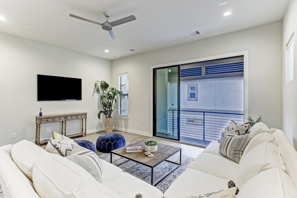 Move-In Ready,Washer/Dryer/Fridge included. Stunning 3-level residence w yard & downtown views by coveted building firm City Choice Homes w close proximity to the city’s most desired dining with walkability to renown parks,access to Pickleball Courts all in minutes. The home showcases a timeless aesthetic w 3 bedrooms,3.5 baths,hardwoods throughout + oversized balcony. Enter the foyer leading to a en-suite guest room. Ascend to the 2nd level boasting a sunlit Great Room spanning over 30’ opening to the balcony & kitchen outfitted w top tier appliances,shaker cabinetry,quartz countertops & an expansive flush bar top island. 3rd level: Owner’s suite,en-suite guest room & utility room. The Owners wing features coffered 10’ ceilings & massive walk-in closet w built-ins. Owner’s bath consists of a freestanding soaking tub,dual vanities trimmed with high-end plumbing fixtures & a substantial glass-enclosed shower & private water closet. MLS# 37310501
