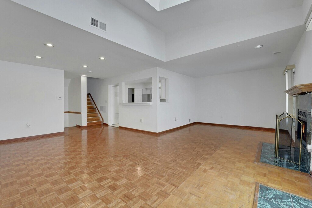 Sunny duplex, no one on top or bottom of unit, 5 bedrooms/ 2 1/2 baths, 1319 sq. ft. of modern living space. 2nd floor, 2 bedrooms, 2 baths & terrace! Upgraded, kitchen with breakfast bar, unit, features, hardwood flooring, huge terrace of living room and another of master bedroom, cathedral ceilings, wood burning fire place, skylight, covered parking for 2 cars and much more! This lovely unit is nested in the very desirable Harmon Cove Community, with a county like setting, endless walking trails, some along the water and bike lanes. Complex offers 24 hr. security and pool, easy commute to NYC with transportation that comes on site!