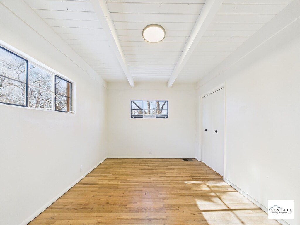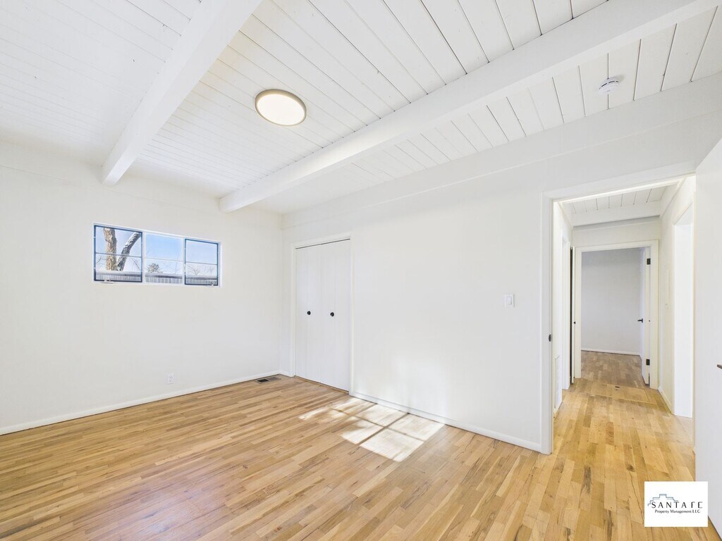 Welcome to this charming 2-bedroom, 1-bathroom home located in the desirable historic Santa Fe location, South Capital. This newly remodeled residence boasts an open-concept living and dining room, perfect for entertaining or simply enjoying your daily routine. The home features wood floors throughout, adding a touch of warmth and elegance. The private courtyard is an ideal spot for outdoor relaxation, while the private driveway adds convenience. The home is equipped with forced air heating and air conditioning, ensuring your comfort in all seasons. Plus, its close proximity to downtown Santa Fe offers easy access to a variety of amenities. Experience the perfect blend of historic charm and modern comfort in this beautiful Santa Fe home. Please Note: Wood burning Fireplace is inoperable. Virtual Tour Link Click Here -->