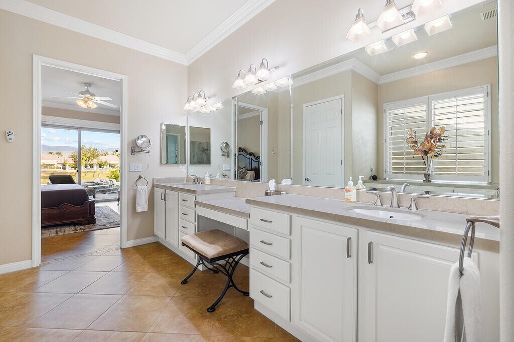 Welcome to your dream retreat in the prestigious Sun City Shadow Hills,a vibrant 55+ community in Indio,California. This stunning 3-bedroom,2.5-bathroom home is available for seasonal rental and comes turnkey furnished,offering you a seamless transition into resort-style living. Step inside to discover a beautifully appointed interior with an open floor plan that seamlessly blends comfort and elegance. The spacious living area is perfect for entertaining,featuring plush seating and a large flat-screen TV. The gourmet kitchen is a chef's delight,equipped with modern appliances and ample cabinet space. The master suite is a true sanctuary,boasting a luxurious en-suite bathroom with dual vanities and a separate shower. Two additional bedrooms provide plenty of space for guests. Outside,enjoy the serene golf course from your private backyard,ideal for morning coffee or evening cocktails. Enjoy the private pool,spa,BBQ,and fire pit all outside your door. As a resident of Sun City Shadow Hills,you'll have access to world-class amenities,including golf courses,swimming pools,fitness centers,and a bustling clubhouse with a variety of social activities. Located near popular attractions,shopping,and dining options,this home offers the perfect blend of relaxation and convenience. Nearby,you'll find the Shadow Hills Golf Club and Shadow's restaurant.
