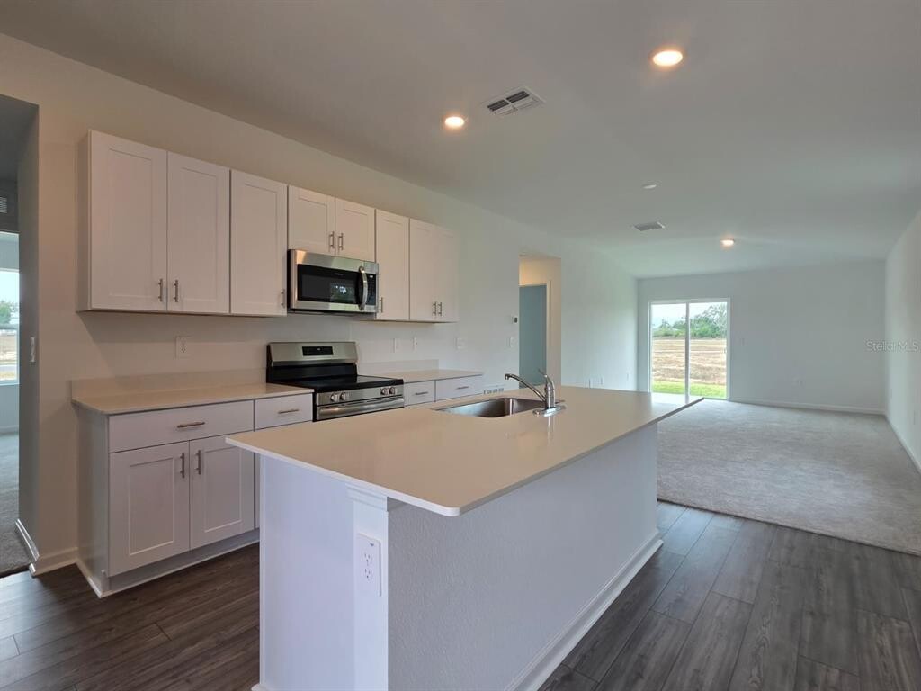 Beautiful BRAND NEW HOME!! Available immediately FOR RENT!! Nestled in the Marion Ranch Subdivision with tons of amenities. Step into comfort and style with this stunning new block and stucco single-level home,perfectly designed for low-maintenance living. From the moment you enter,you’ll love the open-concept layout that seamlessly connects the kitchen,dining,and living areas—ideal for entertaining or everyday relaxation. Tucked privately to one side of the home are three spacious bedrooms,including a luxurious owner’s suite featuring a walk-in closet with shelving and an elegant ensuite bathroom complete with quartz countertops,large vanity mirror,and a walk-in tile-surround shower. The modern kitchen is equipped with Frigidaire® stainless steel appliances—fridge,a freestanding range,built-in microwave,and dishwasher—paired with durable quartz countertops and a spacious center island. Vinyl plank flooring in wet areas while plush carpet adds comfort to the bedrooms. Located in the highly desirable Marion Ranch community,residents enjoy a vibrant lifestyle with access to top-tier amenities,including a sparkling pool,clubhouse,tennis courts,playground,and more. It’s the perfect blend of comfort,convenience,and community living. Don’t miss the chance to make this beautiful new home yours. Rent includes the HOA and basic internet. MLS# OM714370