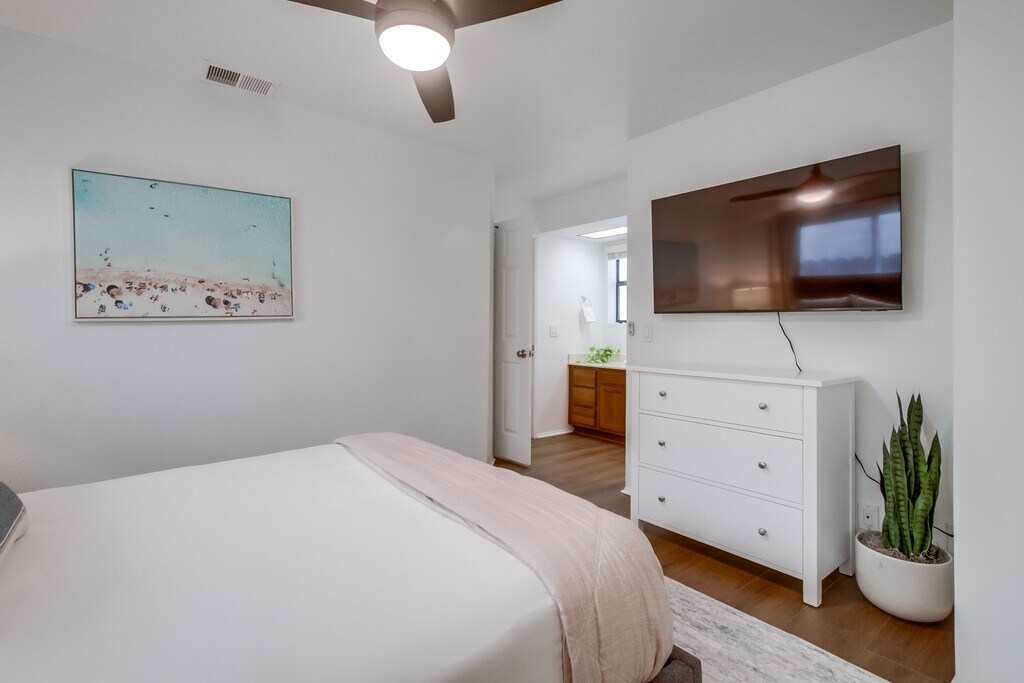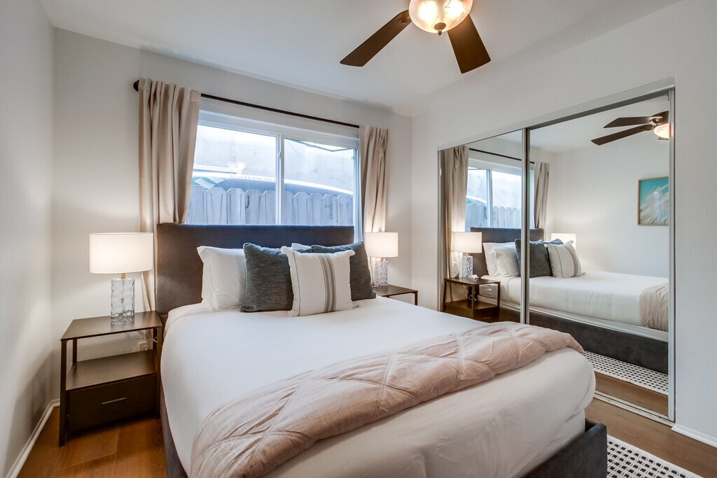 Welcome your family into this amazing & spacious ground level 2br/2ba beach home that sleeps 6 people and is just steps away from Mission Bay & a short walk to the ocean. Pet friendly! This home features a 2 car tandem uncovered parking, washer/dryer, and beach gear! The location of this property can't be beat as it is located on a quiet court away from the crowds, but right in the heart of Mission Beach with its wonderful cafes, shops, restaurants, and bars. **No AC - fans are provided. **Fireplace is not operable. OUR HOME Enter our newly redecorated home to find all brand new furniture & decor, and a great patio with BBQ. The cozy living room is ideal for a night in with the family to enjoy the Smart TV on the plush sleeper sofa. The dining area and the fully stocked kitchen are a great place for the family to gather. Dogs ok (1 big or 2 small)! The home is just steps away from the bay, with options to rent kayaks, bikes, paddleboards, surf gear & more! The Primary Bedroom features a new Queen bed, Smart TV & ensuite bathroom which features a tub/shower combo. Br #2 features a new Queen bed & Smart TV. The hallway bathroom features a tub/shower combo. The tandem parking space will fit 2 cars. SLEEPING ARRANGEMENTS - Primary Bedroom | 1 Queen Bed (sleeps 2) + ensuite bath + Smart TV - Bedroom 2 | Queen Bed (sleeps 2) + Smart TV - Living Room | Sleeper Sofa (sleeps 2) + Smart TV OUTDOOR + OTHER FEATURES - Steps away from the bay, and a short walk to the swim/surf friendly white sandy beach - Pet friendly! - Newly decorated! All new furniture! - Beach gear! Includes boogie boards & beach chairs - Tandem parking space! - NO A/C, but ceiling fans and fans are provided LOCATION Live the beach lifestyle in the highly desirable neighborhood of Mission Beach, central to endless water activities, attractions, dining, and shopping! Our guests are provided with a comprehensive "live like a local" guide, including our favorite recommendations and a list of local vendor discounts. Here's a sneak peek HIT THE BEACH! We are conveniently located in the heart of South Mission Beach Beautiful white sandy, swim & surf friendly beach located just steps away. Take advantage of our complimentary boogie boards and beach chairs. SHOPPING & DINING! Just steps away is the main street, Mission Blvd., with endless shopping, dining, and entertainment. Our guests are provided a comprehensive list of recommended local eats and discount codes for rental shops. WATER ACTIVITIES! If you're looking for something other than boogie boarding and swimming in the ocean, we are located just down the street to Mission Bay and water rentals shops, including jet skiing, wakeboarding, stand up paddle boarding, kayaking, and boating. ATTRACTIONS! Enjoy a full day of family fun at Belmont Park located a short 5 minute bike ride away, SeaWorld San Diego is a short 5 minute drive, and world famous San Diego Zoo is located just 15 minutes from our beach home. POLICIES & GOOD NEIGHBOR GUIDELINES NOISE | Music and other noise is to be kept at an appropriate level and in a manner that is mindful to neighbors. Noise that can be heard 50 feet away from the home is prohibited. Parties are not allowed. This home is available for a 1-year, fully-furnished lease. Owner pays for water, sewer, trash. Tenant is responsible for gas/electric and setting up their own internet. Home is available now for immediate move-in! Welcome your family into this amazing & spacious ground level 2br/2ba beach home that sleeps 6 people and is just steps away from Mission Bay & a short walk to the ocean. Pet friendly! This home features a 2 car tandem uncovered parking, washer/dryer, and beach gear! The location of this property can't be beat as it is located on a quiet court away from the crowds, but right in the heart of Mission Beach with its wonderful cafes, shops, restaurants, and bars. **No AC - fans are provided. **Fireplace is not operable. OUR HOME Enter our newly redecorated home to find all brand new furniture & decor, and a great patio with BBQ. The cozy living room is ideal for a night in with the family to enjoy the Smart TV on the plush sleeper sofa. The dining area and the fully stocked kitchen are a great place for the family to gather. Dogs ok (1 big or 2 small)! The home is just steps away from the bay, with options to rent kayaks, bikes, paddleboards, surf gear & more! The Primary Bedroom features a new Queen bed, Smart TV & ensuite bathroom which features a tub/shower combo. Br #2 features a new Queen bed & Smart TV. The hallway bathroom features a tub/shower combo. The tandem parking space will fit 2 cars. SLEEPING ARRANGEMENTS - Primary Bedroom | 1 Queen Bed (sleeps 2) + ensuite bath + Smart TV - Bedroom 2 | Queen Bed (sleeps 2) + Smart TV - Living Room | Sleeper Sofa (sleeps 2) + Smart TV OUTDOOR + OTHER FEATURES - Steps away from the bay, and a short walk to the swim/surf friendly white sandy beach - Pet friendly! - Newly decorated! All new furniture! - Beach gear! Includes boogie boards & beach chairs - Tandem parking space! - NO A/C, but ceiling fans and fans are provided LOCATION Live the beach lifestyle in the highly desirable neighborhood of Mission Beach, central to endless water activities, attractions, dining, and shopping! Our guests are provided with a comprehensive "live like a local" guide, including our favorite recommendations and a list of local vendor discounts. Here's a sneak peek HIT THE BEACH! We are conveniently located in the heart of South Mission Beach Beautiful white sandy, swim & surf friendly beach located just steps away. Take advantage of our complimentary boogie boards and beach chairs. SHOPPING & DINING! Just steps away is the main street, Mission Blvd., with endless shopping, dining, and entertainment. Our guests are provided a comprehensive list of recommended local eats and discount codes for rental shops. WATER ACTIVITIES! If you're looking for something other than boogie boarding and swimming in the ocean,