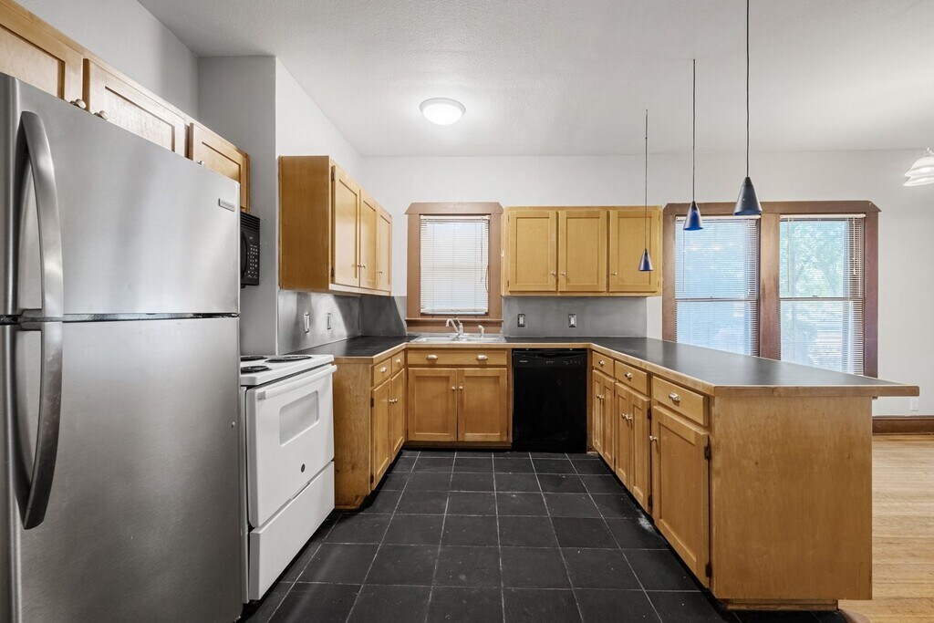 Welcome to your ideal urban retreat in the sought-after North Campus/Hyde Park area! This exceptional 4-bedroom, 3-bath home is a harmonious blend of modern elegance and classic charm, offering a lifestyle of comfort and convenience. Step inside and be greeted by the timeless allure of hardwood floors that lead you through the heart of the home. The slate kitchen floors add a touch of sophistication and durability, while the high ceilings create an open and airy atmosphere throughout. The kitchen is a chef's dream, boasting modern features such as maple cabinets, stainless steel refrigerator, and dishwasher—perfect for preparing culinary masterpieces and hosting memorable gatherings. And with the washer and dryer thoughtfully included, laundry day becomes a breeze. Stay cozy year-round with updated central heat and air, providing a perfect indoor climate no matter the season. Each bedroom offers generous space and comes adorned with ceiling fans, ensuring a peaceful and comfortable haven for all family members. The living room, dining room, and separate game/study room provide abundant space for relaxation and entertainment, allowing you to create cherished memories with loved ones. Conveniently, a 2-car garage with storage space ensures you have plenty of room for vehicles, outdoor gear, and more, keeping everything neatly organized. The location is unbeatable, placing you in the heart of a vibrant community with easy access to local attractions, parks, eateries, and excellent schools, making this home perfect for families and professionals alike. Don't miss the chance to call this North Campus/Hyde Park treasure your own. Take the first step towards an extraordinary living experience—schedule your private tour today and discover the possibilities of your new dream home!