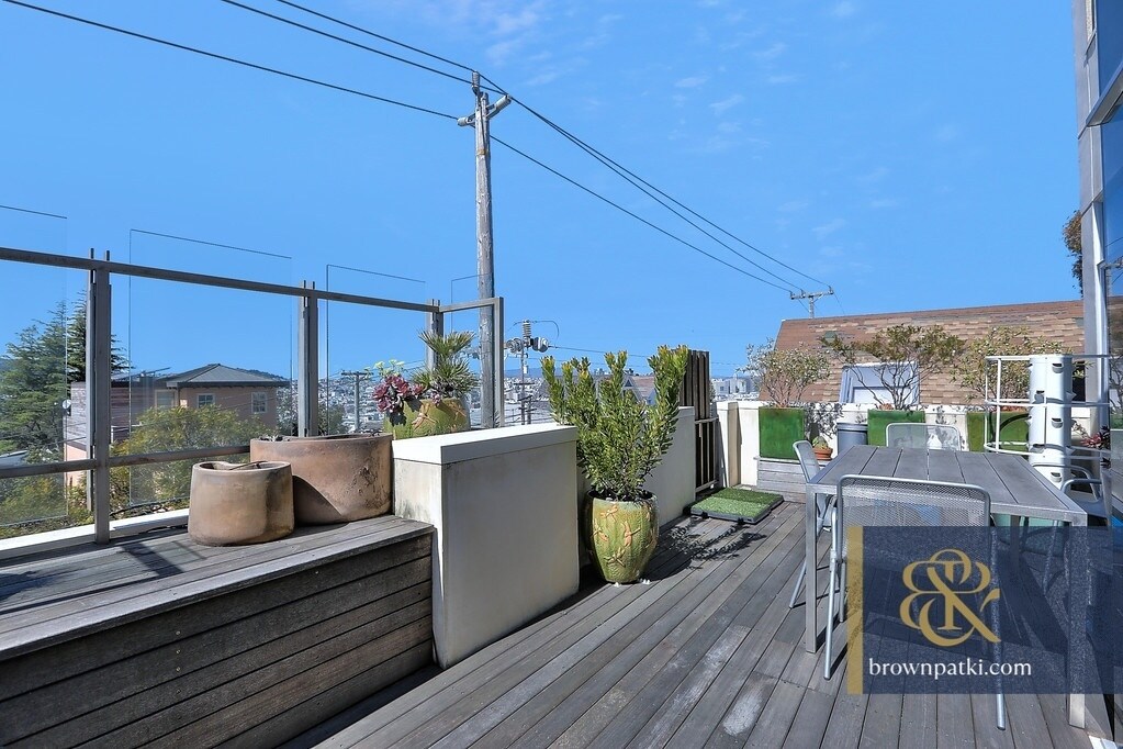 Potrero Hill Penthouse - Roof Deck, 360 Degree Views | Brown & Patki Inc.PLEASE TEXT US TO SCHEDULE A VIEWING OR FOR ANY QUESTIONS: Four-One-Five, 236, 2660This super well done, large scale bi-level town home has the following features:- 3 bedrooms, 3.5 bathrooms- Sweeping views from every room - views of Downtown, Bay Bridge and the East Bay- Open floorplan - spacious living room with entertainment system, gas fireplace and views- Chef's kitchen features SubZero, Gaggenau & Miele appliances, Nickels cabinetry, Carrera marble counters, double ovens + plate warmer- Breakfast nook and Formal Dining room- Two primary bedrooms (one w/ steam shower) and all bedrooms with views- Office nook- 3 decks all with views. Roof deck and spa with 360 degree views- Quarter-sawn white oak floors- Air-conditioning (on top level only)- In unit laundry and one car garaged parking included- Walkscore of 89! Numerous shopping and dining options nearby - Multiple MUNI bus lines. Caltrain Station nearby - Convenient to Hwy 101 & 280 KEY TERMS:- Security Deposit = 1.5 x Rent - Pets not allowed - Available now - Min. 1 yr lease term - No utilities included - Unit will be delivered unfurnished. Furniture shown is for staging purposes only. - Renters Insurance Required - No Broker Fee - No guarantee, warranty or representation of any kind is made regarding the completeness or accuracy of descriptions or measurements (including square footage measurements and property condition), such should be independently verified, and Brown & Patki Inc. expressly disclaims any liability in connection therewith. - This unit is a rental unit subject to the San Francisco Rent Ordinance, which limits evictions without just cause, and which states that any waiver by a tenant of their rights under the Rent Ordinance is void as contrary to public policy. PLEASE TEXT US TO SCHEDULE A VIEWING OR FOR ANY QUESTIONS: Four-One-Five, 236, 2660OFFERED BY: Brown & Patki Inc. (DRE #02240568)Brian Brown (DRE #01461194) | Mahesh Patki (DRE#01948053) | Marika Neemia (DRE#01785680)View our other available rentals at: at : 807 Kansas Street #B