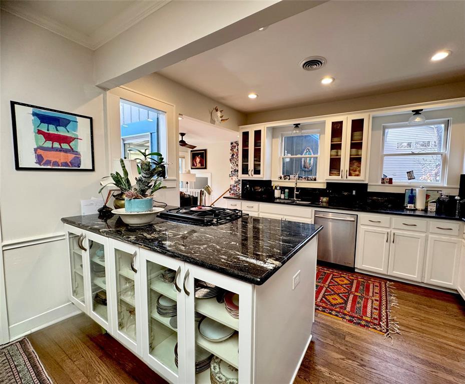 Available any time between June 1st and August 1st with a Lease through June or July 2027! Charming remodeled 1920s home in highly sought after Central Austin neighborhood, adjacent to Eastwoods Park and across Dean Keaton from UT School of Law and minutes from downtown Austin. This home is the perfect combination of cozy, warm and inviting, paired with modern updates to make it a comfortable, livable space that feels like home". The large, open living area has wall to wall windows that allow natural light to flood in while gleaming hardwood floors capture the original charm of the space. Recessed lighting adds additional illumination along with a modern ceiling fan and custom crown molding. The open kitchen / dining space is great for entertaining and boasts beautiful granite countertops, updated cabinetry and stainless appliances. A second eating area off of the kitchen can be a breakfast nook, play room or office space and has a glass sliding door that leads to an outdoor oasis with patio and covered deck. This home has 2 bedrooms and 2 full baths off of the dining area, and a third bedroom or optional study / flex space on the opposite side of the home. There is also a separate room outfitted for a closet or dressing room that is a dream! This gorgeous home is positioned on a quiet dead end street with a carport and driveway for off-street parking as well as a single car garage which can be used for storage. Tenants pay all utilities, Landlord provides monthly landscaping at no additional cost. Email or text listing agent for a video tour and to schedule an in-person tour." MLS ID 5604168