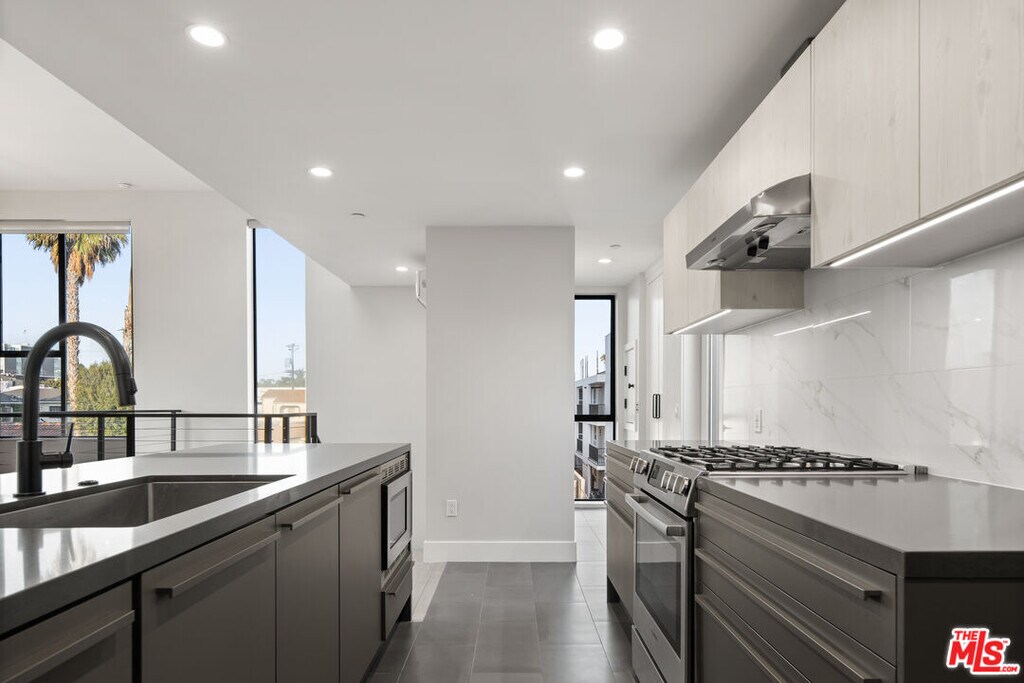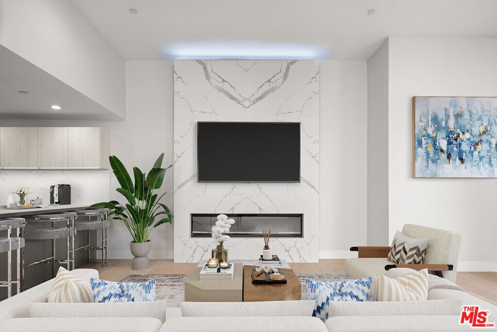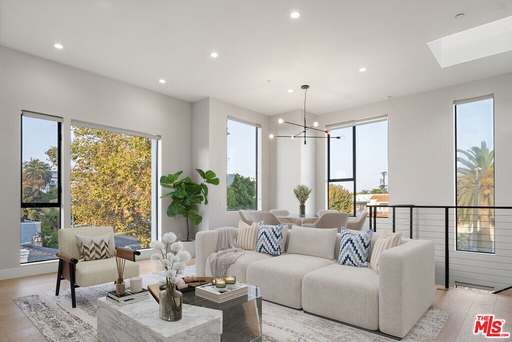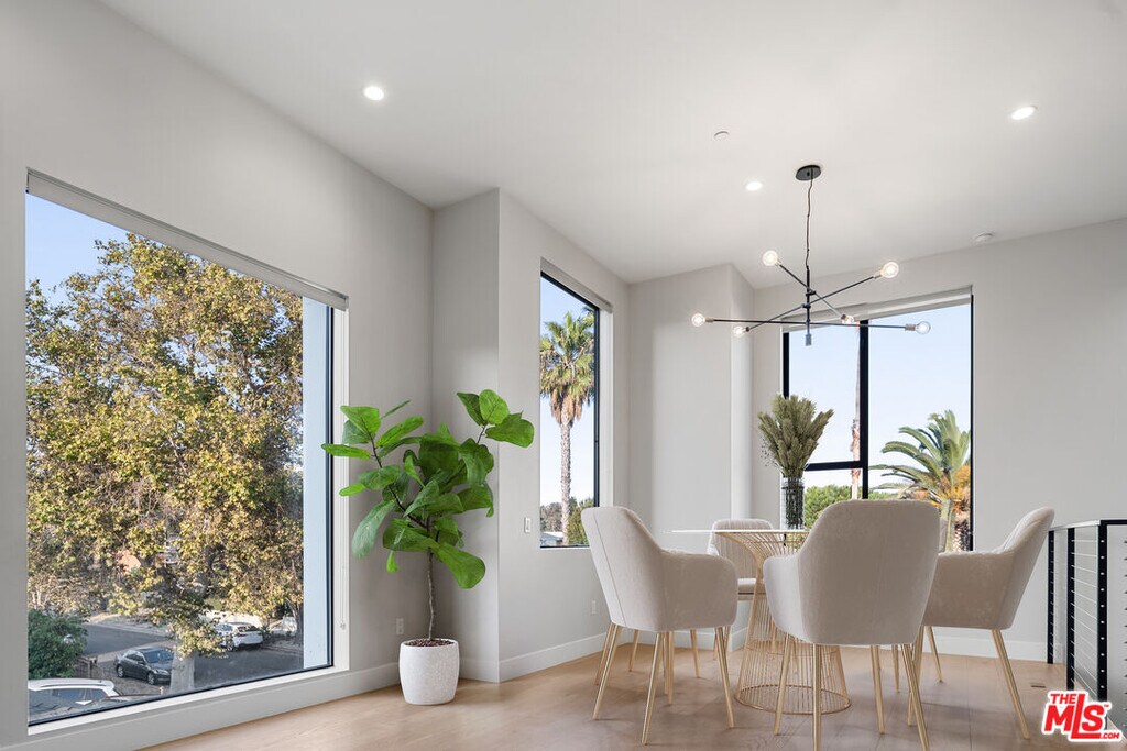 Welcome to the The Detroit Collection, an intimate assemblage of 4 architectural Single-Family Homes. This beautiful front facing home is equipped with high-end designer finishes, hardwood flooring, marble fireplace, and abundant natural light throughout. The incredible cook's kitchen features German-Import Leicht Cabinetry, huge eat-in breakfast bar, room for a large wine fridge or built-in pantry and dumbwaiter. The kitchen opens to a separate dining area and spacious living room with large windows - perfect for soaking up the SoCal sun and mountain views. Incredible open spaces and volume - designed meticulously to entertain on a grand scale. Enjoy dining al fresco on the private rooftop deck & enjoy the incredible 360 views of the city. Huge laundry room and storage area. A symphony of style this new to market modern masterpiece is an unparalleled experience. MLS# 25631703