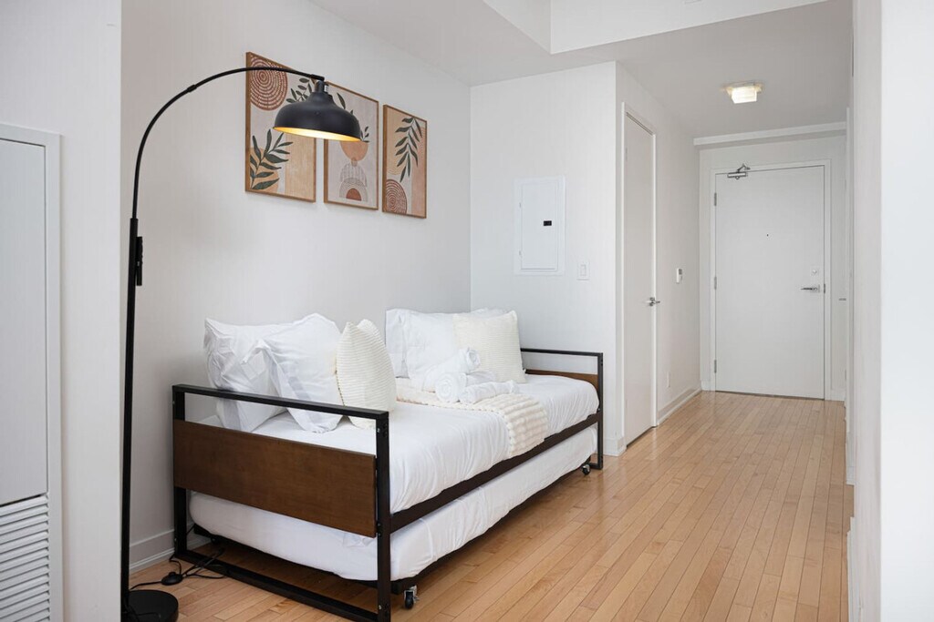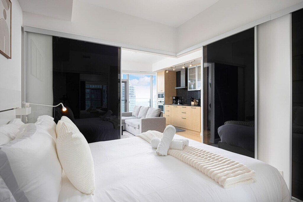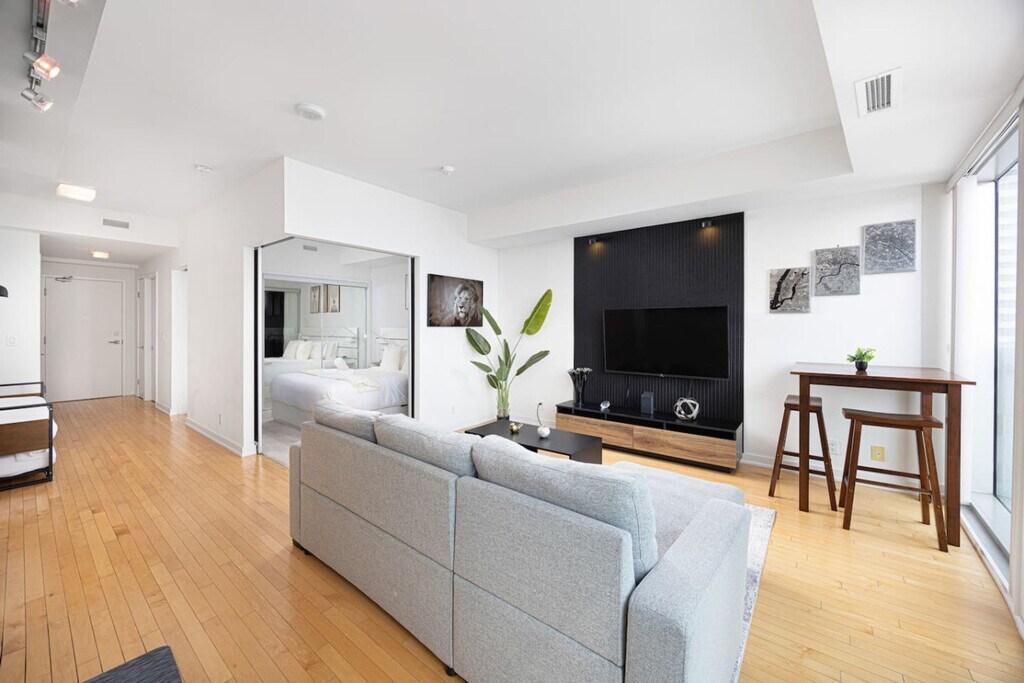 The advertised rate of C$5,109/month is the lowest available price, based on a 1 month(s) stay with a move-in date of April 8, 2026. Rates vary depending on the duration of stay, season, and other parameters. For exact pricing and additional pricing components, please visit our website and enter your desired move-in and move-out dates. The rate is applicable when billed upfront; it can be higher if billed in multiple payments. Feel at home in this fully furnished apartment, located in the heart of downtown Toronto and close to all major attractions. This unit offers approximately 600 ft² / 55m² of space. This space features high-speed fiber internet and Wi-Fi, a smart HD TV, a full bathroom, full sets of hotel-quality bedding and fresh towels, a fully equipped kitchen with appliances including a fridge and stove, and an in-suite washer and dryer. Free secured parking is available for one car. This area is the most popular among visitors thanks to its proximity to all that Toronto has to offer, including landmarks like the CN Tower, Rogers Centre, and Metro Toronto Convention Centre. You'll also be a short walk away from Harbourfront and the lake. Nearby attractions within walking distance include Ripley's Aquarium, the Hockey Hall of Fame, the Financial District, Scotiabank Arena, and the Toronto Islands. The unit is centrally located only 500m away from Union Station, the hub for all transit into downtown Toronto, including TTC (Toronto Transit Commission), VIA Rail, GO Transit, and Union Pearson Express. Uber and Lyft are widely available in downtown Toronto, providing convenient and affordable transportation options for exploring the city. Major attractions can easily be reached by walking or renting a city bike. Smoking is strictly forbidden on the property anywhere, and failure to comply may result in a penalty up to $1000. No more than the stated number of guests in the reservation may stay overnight, unless agreed otherwise. Failure to report the accurate number of overnight guests may result in an immediate cancellation of your stay. Pets, parties, or illegal drugs of any kind are not allowed anywhere on the property (inside or outside). Late checkout beyond the scheduled check-out time will incur fees. [SI]