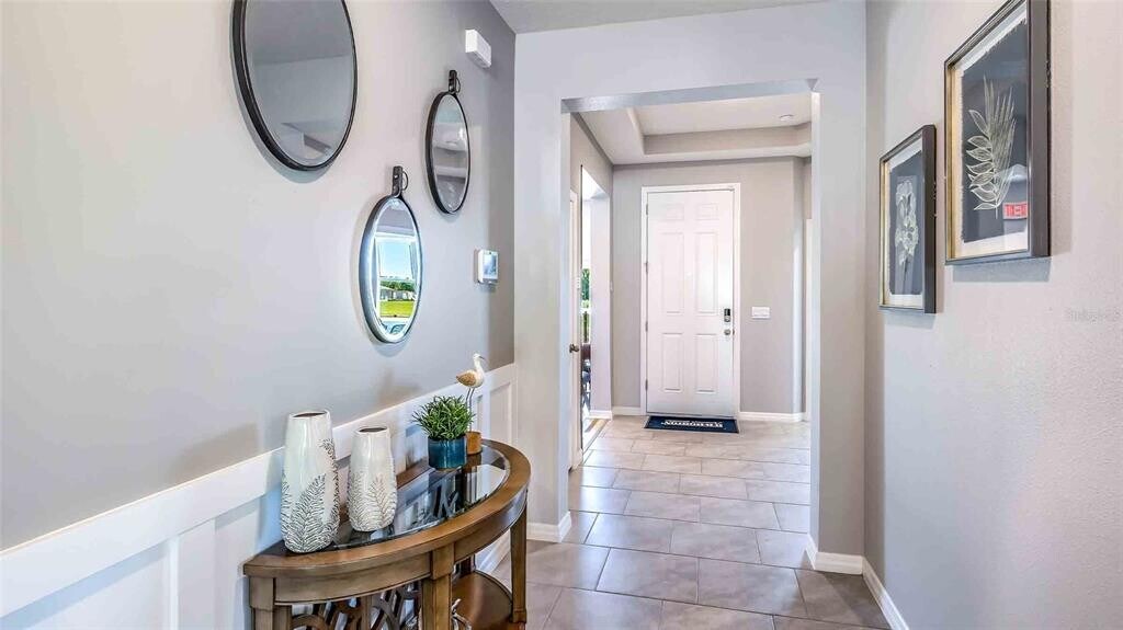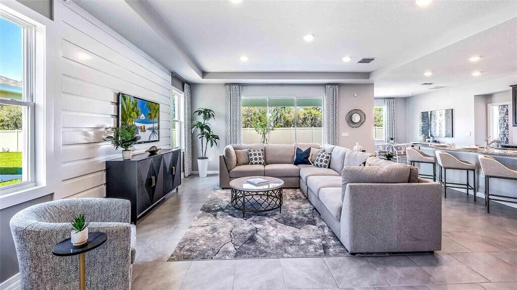 One or more photo(s) has been virtually staged. Beautiful and spacious modern 4/3.5 home ready for move in! Stepping inside you'll be greeted by an airy and inviting open concept floor plan thats seamlessly functional. A great room,separate dining room,and well-appointed kitchen with a dining area are designed to elevate your everyday living experience. Natural light from numerous large windows makes the perfect welcoming ambiance throughout the home. For those who love to entertain,the screened covered lanai and big kitchen island are perfect spot for hosting gatherings. This beautiful home offers a thoughtfully designed layout that maximizes both privacy and convenience. Two bedrooms at the front of the home are connected by a jack-and-jill full bathroom,providing a comfortable and private space for family or guests. Beyond the powder bath and laundry room,you'll find a multi-gen living space with tile and a bedroom w/private bath,a versatile area that can be tailored to your specific needs,whether it's a home office,gym,or home movie theater. The true sanctuary of this home is the Owner's Bedroom,strategically positioned at the back of the house for maximum privacy and tranquility. It boasts an ensuite shower and tub,double Sink Vanity and Large Walk-In Closet. The large windows in the Owner's Bedroom provide plenty of natural light. In addition to its thoughtful design like the trey ceilings and premium finishes,this home offers a Vinyl fenced in backyard and a practical ample driveway with 3 car garage for extra parking space. Don't miss the opportunity to live in this stunning home! Schedule a viewing today and it is available for immediate move in! Room Feature: Linen Closet In Bath (Primary Bedroom). MLS# V4946400