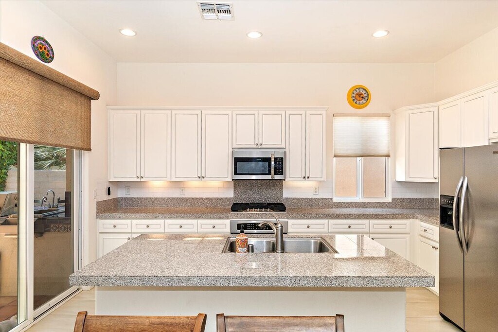 Available mid-December! Outstanding three bedroom home for lease in the gated community of Puerta Azul La Quinta. This beautifully upgraded home that features custom paint, tile flooring, recessed lighting, an island kitchen with granite counters and stainless appliances, an interior laundry, and a main bedroom suite with a dual basin vanity and separate shower and soaking tub. Private backyard with covered patio, custom pavers, sitting areas, firepit, and BBQ station with a sink. Community amenities include pools and spas, tennis court, fitness center, and a clubhouse with pool table and BBQ area. Sorry, no pets. Offered at $2,795 per month unfurnished on an annual lease. Please call the property manager at for more information or to get an application. Minimum Qualifications: 650 FICO score (Not applicable for potential tenants with rent subsidies under SB 267) Verifiable income of at least 3 times tenants portion of the monthly rent. No history of bankruptcies or evictions Positive rental history