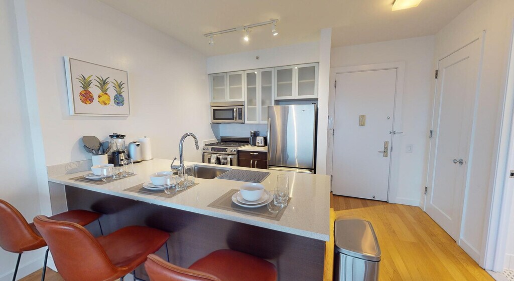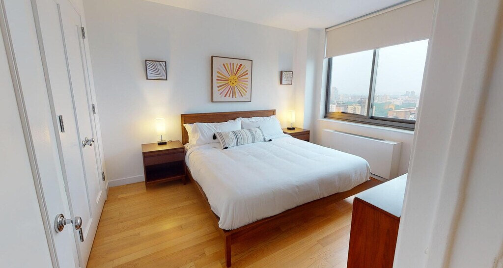Feel at home in this fully furnished 1-bedroom apartment at Columbus Square, in the heart of the Upper West Side. This apartment offers unmatched views of Central Park and access to state-of-the-art amenities. The building has an elevator and a 24-hour concierge. This custom-designed apartment is perfect for remote work and includes a fully equipped kitchen, a full bathroom, a king-size mattress, a smart TV, and in-unit laundry. Amenities include a state-of-the-art fitness center, sundeck, elevated green space and garden lounges, grilling areas, children's playroom, indoor heated lap pool, resident lounge with Wi-Fi and gourmet kitchen, and bike storage. Public garage parking is available on site, managed by QuickPark. Overlooking Manhattan’s famous Upper West Side, this apartment is near world-class shopping, restaurants, museums, universities, and theaters. This impressive complex of 5 buildings provides access to everything you could need or want from the moment you step out the door. Internet speeds are not guaranteed and may fluctuate. The A/C runs from May to October, and the heating system works from November to May, controlled by the building management. The building lobby is currently undergoing renovations, which are expected to continue through Spring 2026. Includes private high-speed internet, a standing desk, an ergonomic work chair, a 34-inch ultra-wide monitor, a microphone, a webcam, computer speakers, an LED streaming light, a green screen, a keyboard, a mouse, a laptop stand, and a docking station. A laptop computer is not included. Partners reserve the right to conduct secure ID verification, background checks and request Proof of Income. Guests will have 24 hours to complete these steps. Booking confirmation is contingent upon the successful completion of these checks, as well as meeting the minimum eligibility requirements. [SI]