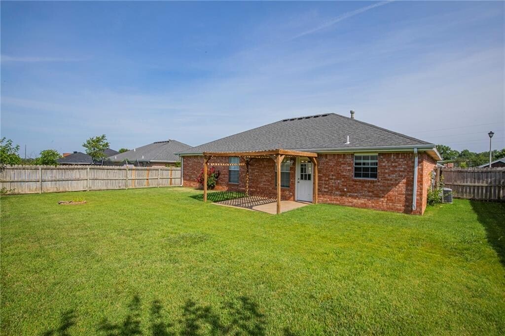 Great 3 bedroom 2 bath home just minutes from I-49, downtown Bentonville, Bike trails, schools, dining etc. Tile in kitchen and baths, new vinyl plank wood style flooring thru living room and hall, new carpet in bedrooms. Living room has vaulted ceiling with gas fireplace that opens into the kitchen. Kitchen includes lots of cabinets. Master bedroom has trey ceiling and bath includes vanity area and large closet. Fenced back yard with pergola. MLS# 1320214