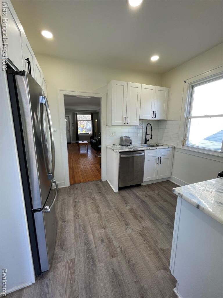 FURNISHED SHORT TERM RENTAL: SMALL BUT MIGHTY...THE LITTLE HOUSE ON LAPRAIRIE OFFERS THE BEST OF CITY LIFE WITH A TOUCH OF NATURE. THE HOME IS WALKING DISTANCE TO DOWNTOWN FERNDALE AND IS ON A DOUBLE DEEP LOT THAT IS WOODED IN THE BACK. FULLY REMODELED IN 2024 THIS CRAFTSMAN HOME HAS HIGHER TREY CEILINGS, HARDWOOD FLOORS, AND TRADITIONAL STYLING WITH NEW KITCHEN THAT INCLUDES NEW SHAKER CABINETS, STAINLESS STEEL APPLIANCES, QUARTZITE COUNTERTOPS (SUPER WHITE TIGER), BATHROOM IS REFRESHED AND MODERNIZED, THE HUGE COVERED FRONT PORCH IS REDONE WITH TREX AND IS A WONDERFUL WAY TO SPEND A SUMMER EVENING RELAXING. PETS OK SIZE RESTRICTIONS 250 NON REFUNDABLE DEPOSIT. PROPERTY INCLUDES QUEEN SIZE BED, LEATHER SOFA, DINING TABLE 4 CHAIRS, DRESSERS, 60 INCH TV, INTERNET, LAWN AND SNOW MAINTENANCE. PROPERTY IS AGENT OWNED.