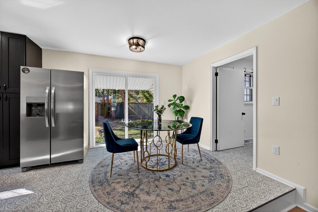 Charming furnished 4BR/3BA rental in North Charleston. Spacious rooms, updated furniture, fenced yard, and a desirable corner lot location.