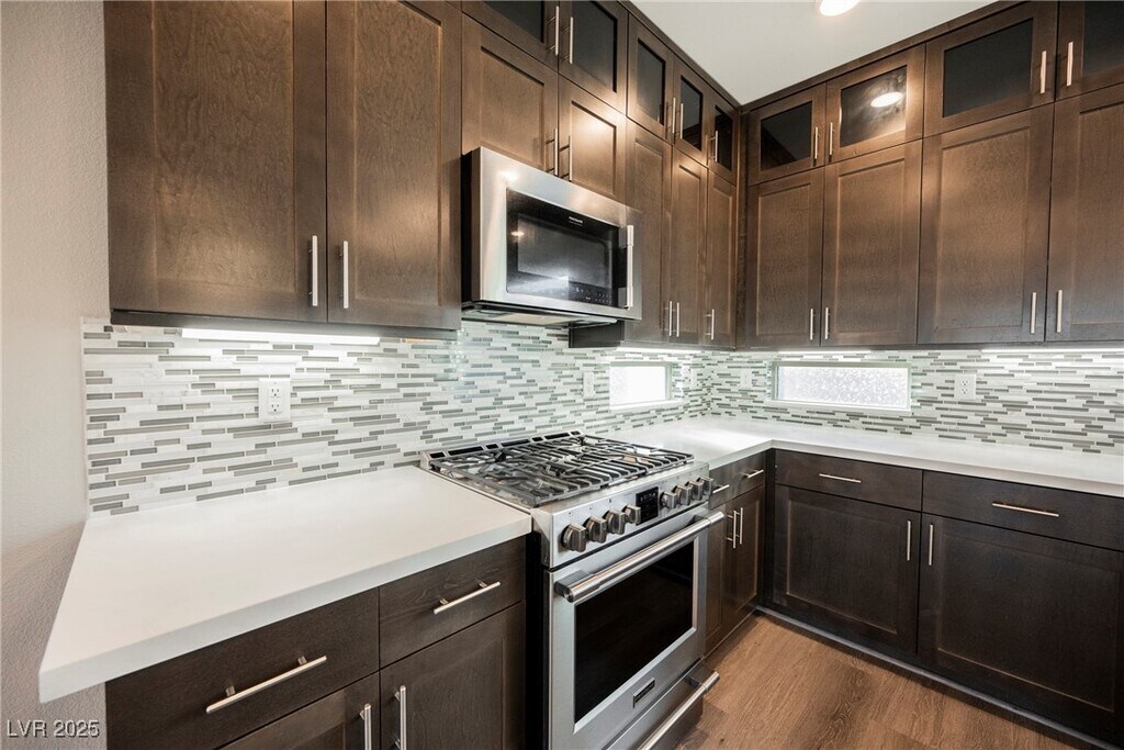 Stephanie MangualModern 3-story home with rooftop deck and mountain views! The first floor includes a private bedroom, 3 4 bath, and laundry area ideal for guests or a home office. The second floor features the primary suite with dual sinks and walk-in closet, plus an additional bedroom and a spacious flex/living area. Upstairs, the third floor offers an open-concept great room with high ceilings, wood-look flooring, cozy fireplace, and balcony access. The chef s kitchen shines with quartz counters, shaker cabinets, stainless steel appliances, mosaic backsplash, pendant lighting, walk-in pantry, and island with breakfast bar. Enjoy morning coffee on the balcony or take in the mountain views from the rooftop deck. Low-maintenance yard, paver patio, and two-car garage complete this stylish rental ready for immediate move-in!