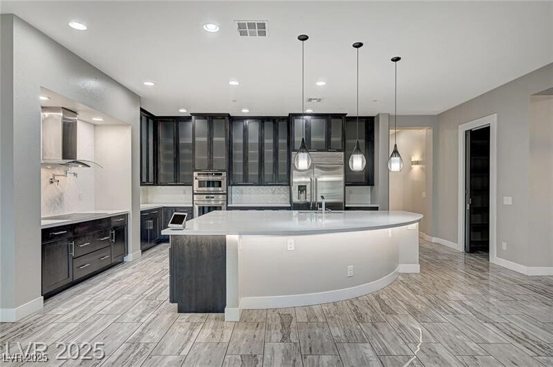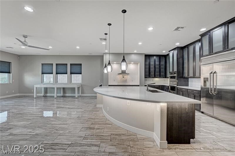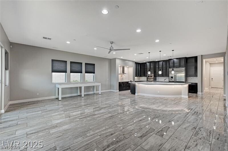 Welcome to this truly unique, semi-custom Southwest estate, perfectly managed and move-in ready. Imagine sprawling across over 5,100 sq. ft. on a rare half-acre lot with NO HOA. This is effortless luxury living just minutes from Costco, the Strip, Durango Casino, and the airport. Enjoy 5 oversized bedrooms, 5.5 designer baths, and a massive floor plan that includes a totally private upstairs guest suite and multiple gathering spaces. The home's premium features—from brand-new custom kitchen cabinetry and quartz counters to TOTO bidet toilets and tankless water heaters—guarantee comfort and convenience. The backyard is a private resort: a grand pool, raised spa, ample lounge space, and a dedicated poolside bathhouse with a full bath make hosting a dream. The commitment to resident peace-of-mind is evident, featuring BOSS Kevlar-reinforced security window screens on every window. A rare find in a rental—this property truly lives elevated and stands apart.