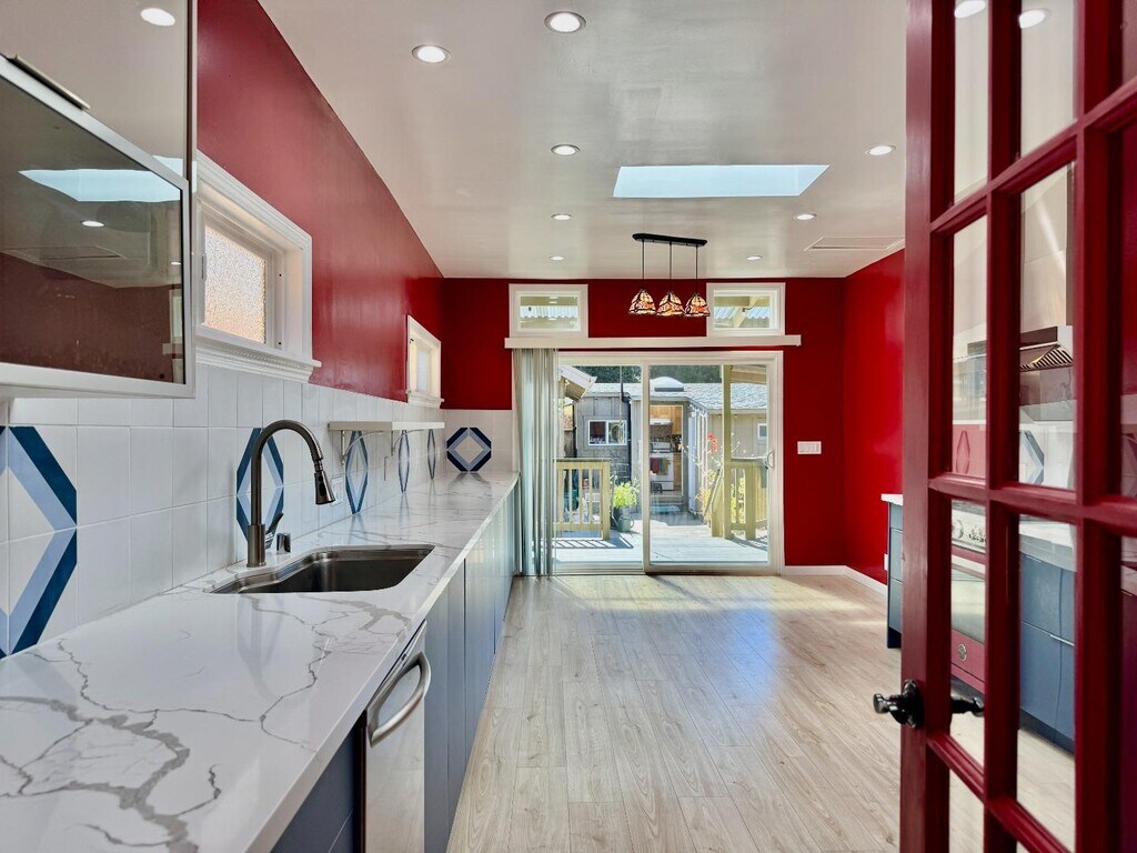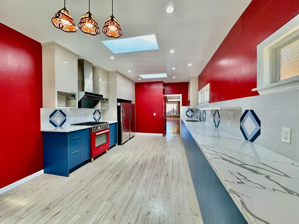 Welcome to this updated, charming retreat located close to Burlingame Avenue! Filled with timeless detail, this single story home radiates lush and bold colors to relax and invigorate the soul. Gleaming oak hardwood floors, recessed lighting and a large window flood light into the living room with beautiful stained glass windows. Continue through the formal dining room with board and batten wood treatment, mini-split, and a Tiffany-style chandelier. A peek through the inviting red french glass door will reveal the expansive kitchen filled with modern convenience and sleek sophistication. Bold reds and deep blues will inspire the inner chef to enjoy the Italian Bertazzoni gas range, side-by-side freezer and refrigerator, endless quartz countertop, among plentiful storage cabinets and two skylights. After a long day, relax in the golden yellow bedroom with two barn door closets and access to the backyard deck, or settle in the teal blue bedroom ensuite with chic bathroom. Impress your guests with a spacious hallway bathroom with free-standing tub in frameless glass door stall shower. Conveniently located about 1/2 mile to Burlingame Avenue, Washington Park, and coveted Burlingame Schools. Easy commute access to CalTrain and Hwy 101. Welcome home!