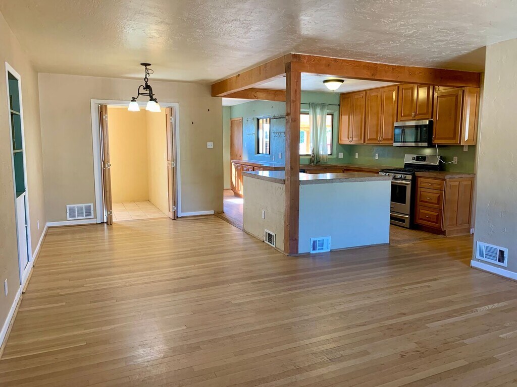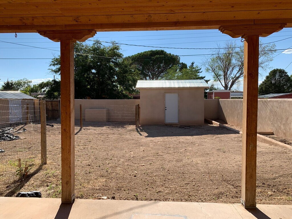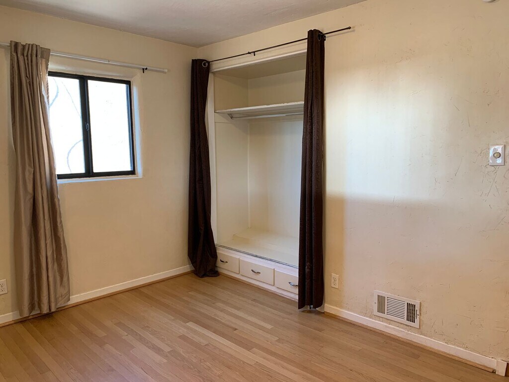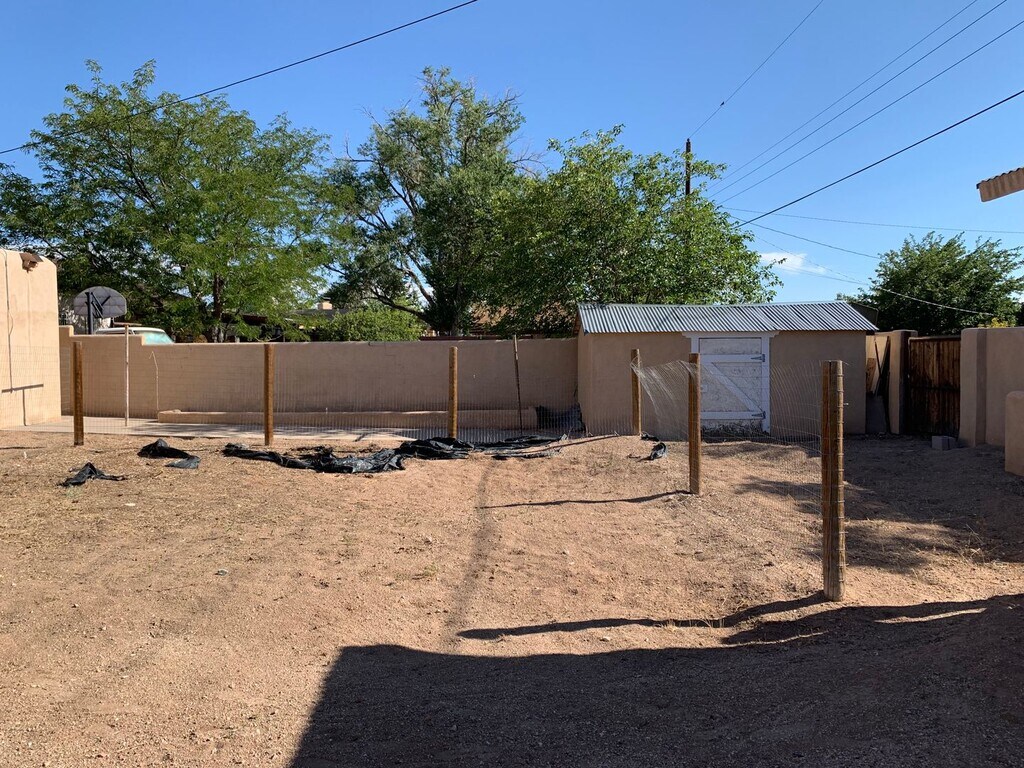 Located in the Elder Homstead neighborhood, this 4 bedroom, 1.5 bath home is minutes away from Kirtland AFB. SW Style home with a fully landscaped front yard and updated kitchen. It has authentic hard wood flooring and the garage has been converted. Kitchen counters are stained solid concrete. There is a wood burning fireplace with a natural stone hearth. Large backyard with 2 sheds. Washer & Dryer included. NM Veteran's Memorial, Cesar E. Chavez Community Center, John Carrilo Park, and Phil Chacon Park are not far. Close businesses, shops, and restaurants have Giovanni's Pizzeria, 999 Seafood Supermarket, Stripes Burrito, Starbucks, Tiny Bubbles Car Wash, Ho Ho Chinese, Cervantes Restaurant, Sacco Automotive, Sais Food Mart, Panaderia Pastelandia, Talin Market, and Southwestern Minerals Jewelry Store. Nearby schools include, Emerson Elementary, Wilson Middle, and Highland High. Please call to schedule a viewing! Or See Virtual Tour Here! Utilities: Resident is responsible for all utilities. PNM & NM Gas in resident's name. Resident pays water on portal. Pet Policy: No Cats Small dogs allowed 30 lbs or less $300 Pet Deposit Limit 2 Pets Vehicle/Parking Policy: Limit 2 Vehicles Not assigned Please call to schedule a viewing!