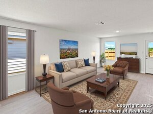 VIEWS VIEWS VIEWS and LOCATION! Rental Backs up to beautiful country and sky views in a quiet location. No neighbors in the back. Never lived in 4 bedroom with the extras included! Refrigerator, garage door opener, blinds and sod. These items have been purchased and ordered. To be installed prior to tenant move in. Move in special: all admin fees waived! Easy access to exit the neighborhood and onto IH 35. and few neighborhoods can claim a state-of-the-art park just down the street-yours can! Three secondary rooms... one of the rooms has a built in study nook! Primary suite separate from other bedrooms and has full bath and walk in closet. Rare for a rental...gas cooking!!! Modern living area setup with peninsula kitchen that overlooks family room dining combo and the aforementioned country view. Easy to tour come check out today!