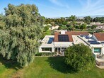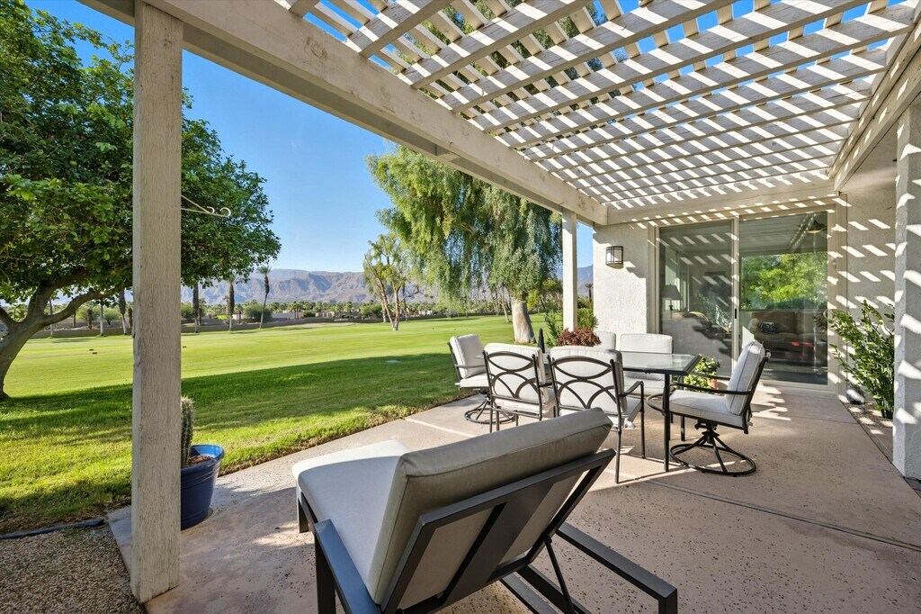 **Discover the perfect blend of modern elegance and desert lifestyle** in this stunningly remodeled 3-bedroom,3-bath home,complete with a family room and a dramatic great room with soaring vaulted ceilingsideal for hosting family and friends. The **chef-inspired kitchen** has been completely redesigned with abundant custom cabinetry,sleek new appliances,and generous counter space,making it a true centerpiece of the home. Step through a private courtyard into a seamless indoor/outdoor living experience. The back patio is an entertainer's dream,offering **breathtaking golf course and mountain views**the perfect backdrop for morning coffee or evening gatherings. The **luxurious primary suite** boasts a spa-like bath with a walk-in shower and exceptional closet space. Two beautifully appointed guest rooms with adjacent baths provide comfort and privacy for visitors. Practicality meets convenience with a **two-car garage**,separate **golf cart garage**,**solar panels**,and an **EV charging station**all designed for modern living. Ideally located just minutes from **world-class shopping,dining,and entertainment**,this home offers the ultimate seasonal escape or full-time retreat. > *Availability: Not offered October 1,2025 - April 2026.*