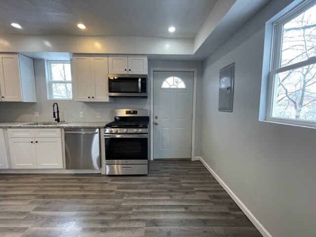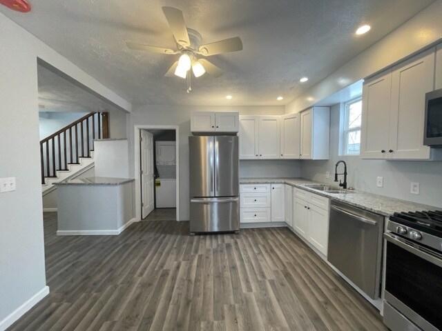 Beautifully renovated house with 2 bedrooms and 2 full baths! One on each floor. Plus a main floor laundry room! This house features all plank flooring, granite countertops, fridge, stove, washer, dryer and central air! Conveniently located close to the river and downtown. Don't miss this one! Tenant pays all utilities, landscaping and snow removal. One year lease including fridge, dishwasher, stove and washer/dryer. Security deposit required. Lease breakage fee applies. Application fee is non-refundable. Showings scheduled with approved applicants only. Beautifully updated home with 2 full bathrooms, granite countertops, hardwood floors, front porch, full basement and central air.