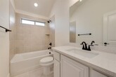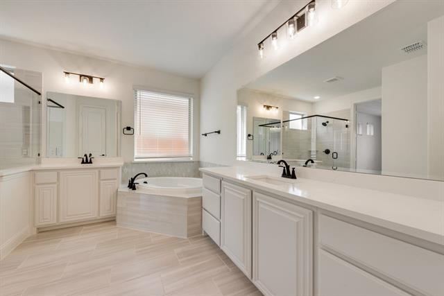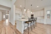 New! Never lived in. This timeless brick-and stone front elevation delivers both sophistication, elegance, and function. Inside, the grand rotunda entry leads to a breathtaking image of the home's beauty with its finished hardwood flooring. The home is accentuated with breathtaking lighting, vaulted ceilings, and a wrought iron railing stairway that impresses everyone there. You feel right at home entertaining in the deluxe kitchen, where every home cook becomes a chef. This kitchen features puree White cabinetry, pendant lighting over the expansive island, quartz countertops, 5 burner gas cooktop, and double ovens, seamlessly blending style and comfort. The large primary suite has spa-like bath with quartz countertops, a soaking tub, and an extensive seat in the shower. Working from home in the well-designed office will definitely add to this home's comfort. All windows have 2-inch blinds which makes this home move-in ready.