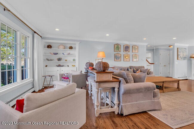 Discover the perfect blend of charm and convenience in this centrally located Spring Lake gem,just steps from the iconic footbridges leading to Ocean Avenue or Third Avenue Downtown. Situated across from serene lake views,this home places you at the heart of everything of Spring Lake has to offer - shops,town,eateries,park,tennis courts,playground,walking trail and beach. Inviting home features spacious first floor primary bed/bath and office with lake views. Full basement for hanging out and oversized driveway for guest parking. Book today Memorial Day - Labor Day. Inquire for 2026 summer rates. Includes beach badges,linens,towels & utilities.