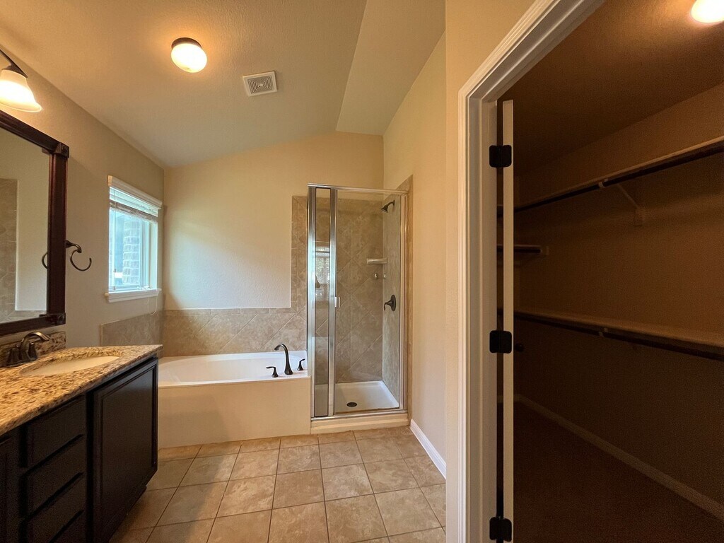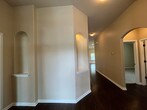 *** Fresh Paint and NEW Carpet *** This beautiful 3 bedroom, 2 bathroom home features an open floor plan, wood floors, and lots of great details. The family room is open to the upgraded kitchen which has granite counters, a beautiful stone tile back-splash, and a big breakfast area. There is a formal dining room too. The nice sized primary bedroom is separate from the other two bedrooms and has a big walk-in closet and primary bath with granite counters, double vanity, and separate tub and shower. The garage has a big area for extra storage and the rear-entry garages make the neighborhood look great. The home has a fully fenced backyard, and a big covered back patio and a covered front porch too. Come see this gorgeous home in this beautiful and convenient neighborhood. Available now. Sorry no pets.