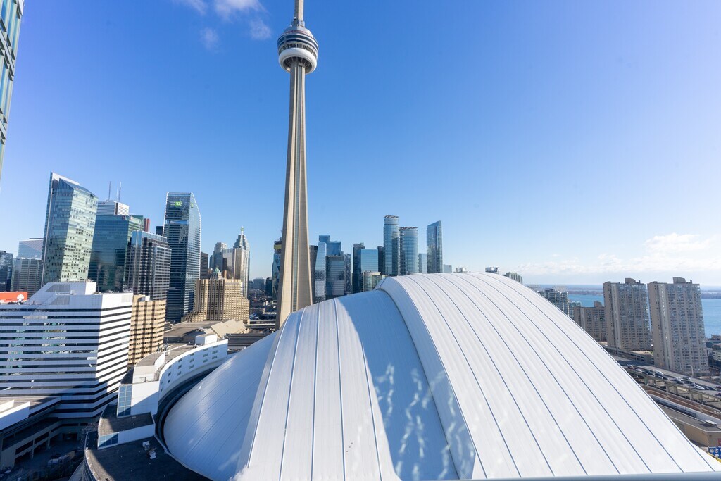 Experience downtown Toronto living at it's finest! Discover the perfect urban retreat just steps from Toronto's most iconic landmarks, including the Harbourfront, Rogers Centre, CN Tower, and the bustling Financial District. This expansive 1-bedroom + den suite offers nearly 700 sq. ft. of open-concept living space, filled with natural light and designed for modern city living. From the comfort of your home, enjoy breathtaking views of the city skyline and Lake Ontario, creating a picturesque backdrop for any time of day. As a unique bonus, you can even catch a glimpse of live events when the Rogers Centre roof is open. Situated in the heart of downtown, you're surrounded by endless dining, entertainment, and cultural experiences, all within walking distance. The suite also includes the added convenience of a dedicated parking spot, making it an exceptional choice for downtown living. Don't miss your chance to live in this vibrant and sought after location! Building amenities include: indoor pool & hot tub, saunas/steam rooms, gym/fitness centre, party room & lounge, media room, games room, outdoor terrace w/BBQs, visitor parking, guest suites, 24/7 concierge, & more!