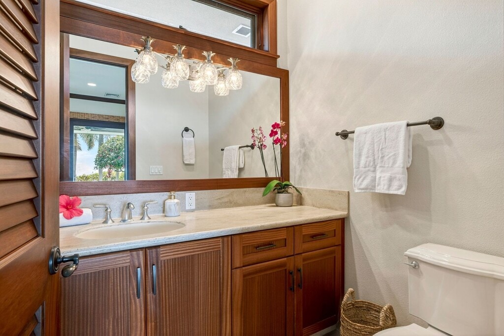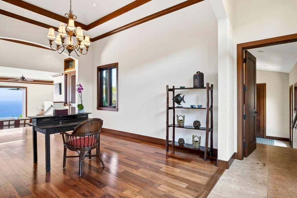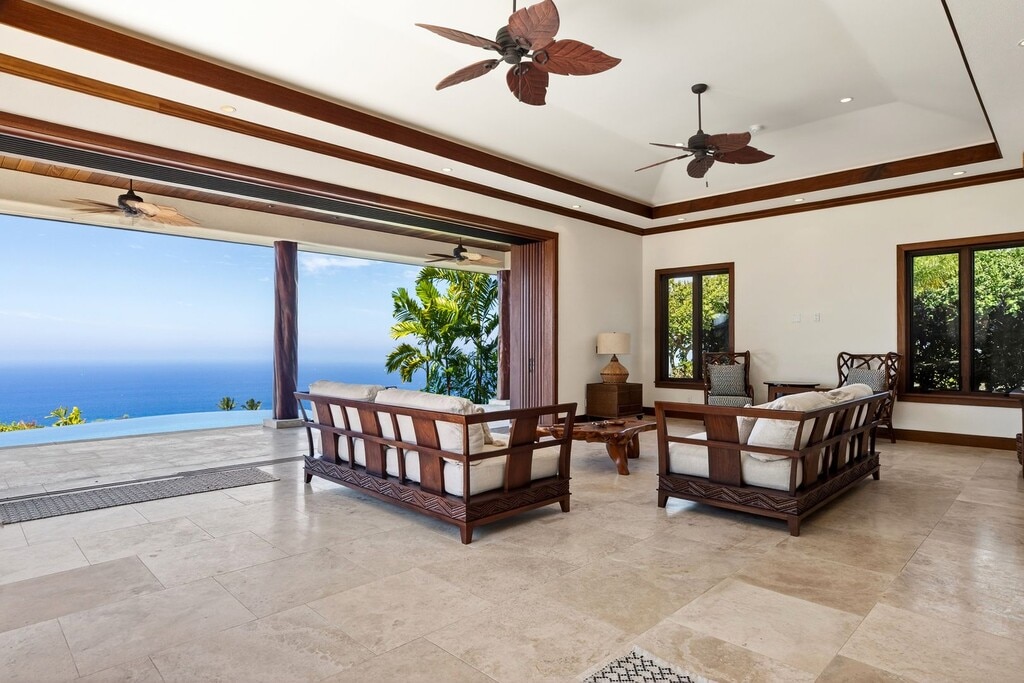 Experience elevated island living in the exclusive, private gated golf club community of Hokuli’a on the Big Island of Hawai‘i. This stunning custom estate offers over 5,000 square feet of interior living space, complemented by more than 2,300 square feet of expansive lanais, showcasing breathtaking 180-degree panoramic views of the Pacific Ocean, coastline, and championship golf course from nearly every room. Designed to embrace Hawai‘i’s indoor-outdoor lifestyle, the open-concept floor plan features 4 spacious bedrooms and 4.5 bathrooms, blending luxury, comfort, and functionality. The primary suite is a private retreat with its own lanai and unobstructed ocean views—perfect for enjoying sunrise mornings and evening sunsets. Each guest suite is thoughtfully designed for privacy and includes custom built-in cabinetry and desks. The great room features fully pocketing sliding doors that seamlessly open to an oversized lanai, creating effortless indoor-outdoor living. Enjoy resort-style amenities including an infinity-edge lap pool, BBQ and fire pit—ideal for entertaining while taking in year-round sunset views. The chef’s kitchen is beautifully appointed with rich Sapele cabinetry with maple inlay, granite countertops, a gas cooktop, and GE Signature appliances, all positioned to capture the stunning ocean vistas from the adjoining living areas. This exceptional property delivers a true luxury island lifestyle within one of the Kona Coast’s most sought-after private communities. Rental Details: - Rent: $13,500.00 + GE Tax - Security Deposit: $13,500.00 - Utilities: Tenant is responsible for electricity, sewer and water. Water and sewer costs will be split based on the number of occupants in each unit No smoking Please do not submit an online application until you have contacted the property manager.