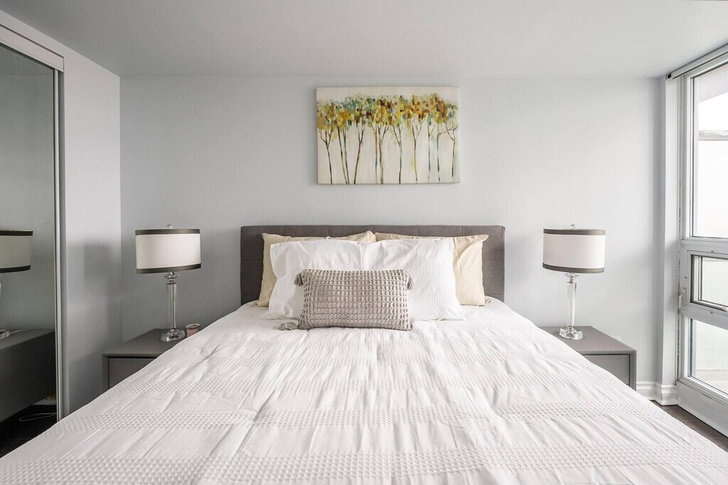 The advertised rate of C$5,100/month is the lowest available price, based on a 30 day(s) stay with a move-in date of October 2, 2026. Rates vary depending on the duration of stay, season, and other parameters. For exact pricing and additional pricing components, please visit our website and enter your desired move-in and move-out dates. The rate is applicable when billed upfront; it can be higher if billed in multiple payments. Immerse yourself in Toronto’s bustling energy and feel at home in this comfortable suite on the 22nd floor, offering a balcony with views of downtown Toronto. This suite has everything you need, including a fully functional kitchen with tea, coffee, kettle, coffeemaker, and toaster. A washer and dryer are available with supplies. The 2 bathrooms are equipped with towels, shampoo, conditioner, body wash, a hair dryer, and other toiletries. Paid underground parking with in/out privileges is available upon request for $10 per night and should be requested in advance. Pets are allowed for a fee of $10 per pet per night, and the opportunity should be confirmed prior to booking. A travel crib (for baby 0-18 months) and bed rails are available for $5 per item per night and should be booked in advance. The condominium building is a 15-minute walk from CN Tower and under a 20-minute walk from Yonge&Dundas Square, making it the best area for business travelers as well as for sightseeing. The minimum age for booking is 18 years. The unit is equipped with video surveillance to the front door only and a noise detector. If the number of guests exceeds the number specified in the reservation, the reservation may be canceled immediately without any refund. If you plan to invite any additional guests, please inform us in advance. Any type of smoking is prohibited inside the unit or building. If the alarm is triggered and the smell of any type of smoke is discovered, the partner has the right to cancel your reservation immediately and charge you a $150 service call and $200 cleaning fees. Guests whose names or ID do not match the information given are not allowed into the building. [SI]